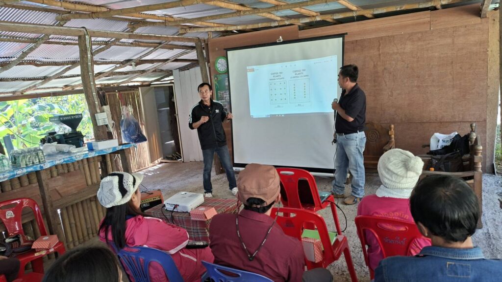 นายศักดิ์สิทธิ์ ศรีวิชัย เกษตรจังหวัดน่าน มอบหมายให้เจ้าหน้าที่ส่งเสริมการเกษตร กลุ่มส่งเสริมและพัฒนาการผลิต สำนักงานเกษตรจังหวัดน่าน ร่วมกับเจ้าหน้าที่สำนักงานเกษตรอำเภอนาน้อย ดำเนินการอบรมให้ความรู้เกษตรกรโครงการความร่วมมือระหว่าง เยอรมัน – ไทย เพื่อส่งเสริมระบบ และการบริหารจัดการด้านการเกษตรอย่างยั่งยืนผ่านเครือข่ายนวัตกรรม ปีที่ 2 (2569) ครั้งที่ 1 กิจกรรม ด้านความรู้การปลูกพืชเสริม/พืชแซม เพื่อสร้างรายได้ระยะสั้น การเตรียมพื้นที่วางผังแปลง และการทำปุ๋ยหมักแบบไม่กลับกอง การทำปุ๋ยน้ำ เกษตรกรเป้าหมาย จำนวน 25 ราย ณ ที่ทำการวิสาหกิจชุมชนกลุ่มแปรรูปกาแฟตำบลน้ำตก หมู่ที่ 5 ตำบลน้ำตก อำเภอนาน้อย จังหวัดน่าน