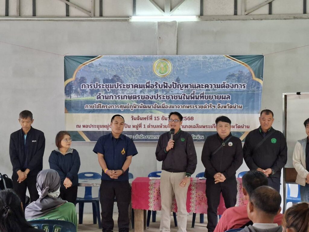 นายศักดิ์สิทธิ์ ศรีวิชัย เกษตรจังหวัดน่าน มอบหมายให้ นายอาณัติ ต๊ะวิไชย นักวิชาการส่งเสริมการเกษตรชำนาญการ กลุ่มส่งเสริมและพัฒนาการผลิต สำนักงานเกษตรจังหวัดน่าน พร้อมด้วยเจ้าหน้าที่จากสำนักงานเกษตรอำเภอเฉลิมพระเกียรติ ร่วมประชุมประชาคมเพื่อรับฟังปัญหาและความต้องการด้านการเกษตรของประชาชนในพื้นที่ขยายผล ภายใต้โครงการศูนย์ภูฟ้าพัฒนาอันเนื่องมาจากพระราชดำริฯ จังหวัดน่าน ณ หอประชุมบ้านสบปืน หมู่ที่ 2 ตำบลห้วยโก๋น อำเภอเฉลิมพระเกียรติ จังหวัดน่าน