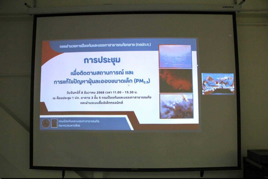 นายศักดิ์สิทธิ์ ศรีวิชัย เกษตรจังหวัดน่าน มอบหมายให้นางจีรพร ชัยเงิน หัวหน้ากลุ่มอารักขาพืช สำนักงานเกษตรจังหวัดน่าน เข้าร่วมการประชุมกองอำนวยการป้องกันและบรรเทาสาธารณภัยกลาง (กอปภ.ก.) ผ่านระบบสื่ออิเล็กทรอนิกส์ เพื่อติดตามสถานการณ์และการแก้ไขปัญหาฝุ่นละอองขนาดเล็ก (PM2.5) ในพื้นที่ภาคกลางสาระสำคัญของการประชุมประกอบด้วย การติดตามสถานการณ์ฝุ่นละอองและแนวโน้มการเกิดสถานการณ์ในปัจจุบัน พร้อมทั้งรายงานความคืบหน้าของมาตรการสำคัญในการแก้ไขปัญหา ได้แก่ มาตรการควบคุมฝุ่นละอองในเขตเมือง มาตรการลดการเผาในพื้นที่เกษตรและพื้นที่ป่า มาตรการควบคุมมลพิษจากยานพาหนะ มาตรการควบคุมฝุ่นละอองจากโครงการก่อสร้างขนาดใหญ่ ณ ห้องประชุมสำนักงานป้องกันและบรรเทาสาธารณภัยจังหวัดน่าน อำเภอเมืองน่าน จังหวัดน่าน