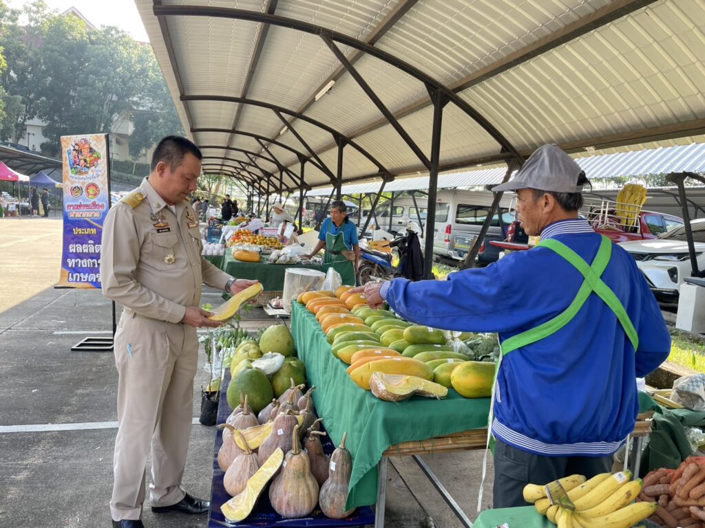นายศักดิ์สิทธิ์ ศรีวิชัย เกษตรจังหวัดน่าน มอบหมายให้นายธนัย บุญมาธิวัฒน์ หัวหน้ากลุ่มส่งเสริมและพัฒนาเกษตรกร ลงพื้นที่ติดตามการดำเนินงานโครงการตลาดเกษตรกร และร่วมเยี่ยมชมและให้กำลังใจ ผู้ประกอบการและเกษตรกร ที่เข้าร่วมจำหน่ายสินค้าใน “กาดม่วนเมือง ศาลากลาง” โดย ผู้ว่าราชการจังหวัดน่านได้มีนโยบายให้ส่วนราชการที่เกี่ยวข้องร่วมกันวางแผนจัดกิจกรรมตลาดนัด ในพื้นที่ศาลากลางจังหวัดน่าน เพื่อเพิ่มช่องทางการตลาดให้กับสินค้าของ สัมมาชีพ ผลผลิตทางการเกษตร สร้างงาน สร้างอาชีพ สร้างรายได้ ซึ่งกลุ่มส่งเสริมและพัฒนาเกษตรกร สำนักงานเกษตรจังหวัดน่าน ได้นำเกษตรกรเข้าร่วมจำหน่ายสินค้า จำนวนทั้งสิ้น 15 ร้านค้า ณ กาดม่วนเมือง โรงจอดรถ ชั้น 1 ศาลากลางจังหวัดน่าน