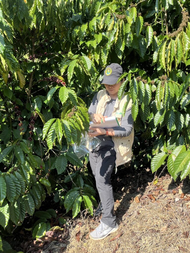 นายศักดิ์สิทธิ์ ศรีวิชัย เกษตรจังหวัดน่าน มอบหมายให้ นางสาวกชกร แสนธิวัง สำรวจการระบาดมอดเจาะผลกาแฟ รอบที่ 2 เพิ่มเติมอีก 5 แปลง และสังเกตผลการแขวนกับดักล่อมอดด้วยสารล่อแอลกอฮอล์ 15 วัน พบว่าเริ่มมีมอดเข้ามาติดกับดัก จึงให้คำแนะนำแก่เกษตรกรในการดูแลกับดักไม่ให้น้ำยาในกับดักแห้ง ณ บ้านสันเจริญ ตำบลผาทอง อำเภอท่าวังผา จังหวัดน่าน