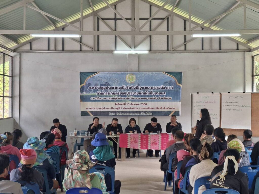 ข่าวประชาสัมพันธ์เกษตรจังหวัดน่าน ร่วมประชุมประชาคมเพื่อรับฟังปัญหาและความต้องการด้านการเกษตรของประชาชนในพื้นที่ขยายผล admin_doae / 17 ธันวาคม 2025 วันที่ 15 ธันวาคม 25
