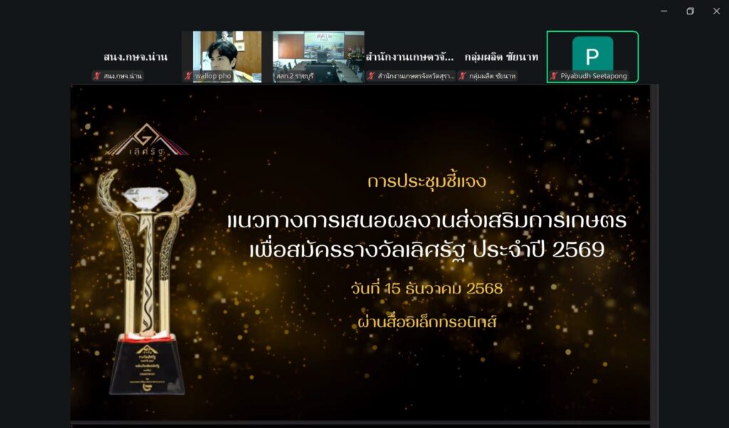 ข่าวประชาสัมพันธ์เกษตรจังหวัดน่าน ร่วมประชุมชี้แจงแนวทางการเสนอผลงานส่งเสริมการเกษตรเพื่อสมัครรางวัลเลิศรัฐ ประจำปี 2569 admin_doae / 17 ธันวาคม 2025 วันที่ 15 ธันวาคม 25