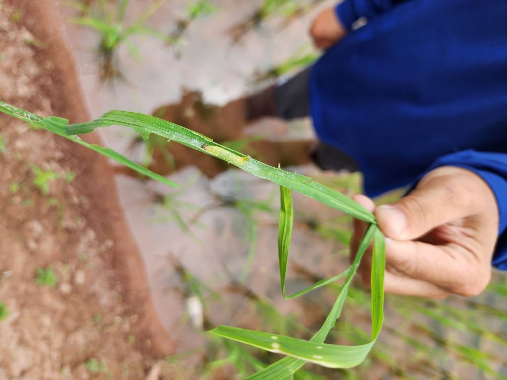วันที่ 21 สิงหาคม 2566 นายเรวัต พรมสาส์น เกษตรอำเภอเชียงกลาง มอบหมายให้นางสาวปิยรัตน์ ธีราธรรม นักวิชาการส่งเสริมการเกษตรปฏิบัติการ ลงพื้นที่สำรวจโรคและแมลงศัตรูพืชตามที่ได้รับแจ้งจากอาสาสมัครเกษตรหมู่บ้าน หมู่ 3 บ้านหัวน้ำ ตำบลพระธาตุ อำเภอเชียงกลาง จังหวัดน่าน พบการเข้าทำลายของหนอนห่อใบข้าว และพบอาการของโรคใบไหม้ในข้าว พร้อมได้ให้คำแนะนำในการป้องกันกำจัด โดยใช้สารฉีดพ่นป้องกันแมลงประเภทดูดซึม เช่น ฟิโปรนิล หรือคาร์โบซัลแฟน เพื่อกำจัดหนอนห่อใบข้าว และ ฉีดพ่นด้วยสารป้องกันกำจัดโรคพืชเมตาเลกซิล แมนโคแซบ เพื่อป้องกันกำจัดโรคใบไหม้ในข้าว ทั้งนี้ได้แนะนำให้เกษตรกรหมั่นสำรวจแปลงข้าวอย่างสม่ำเสมอ
