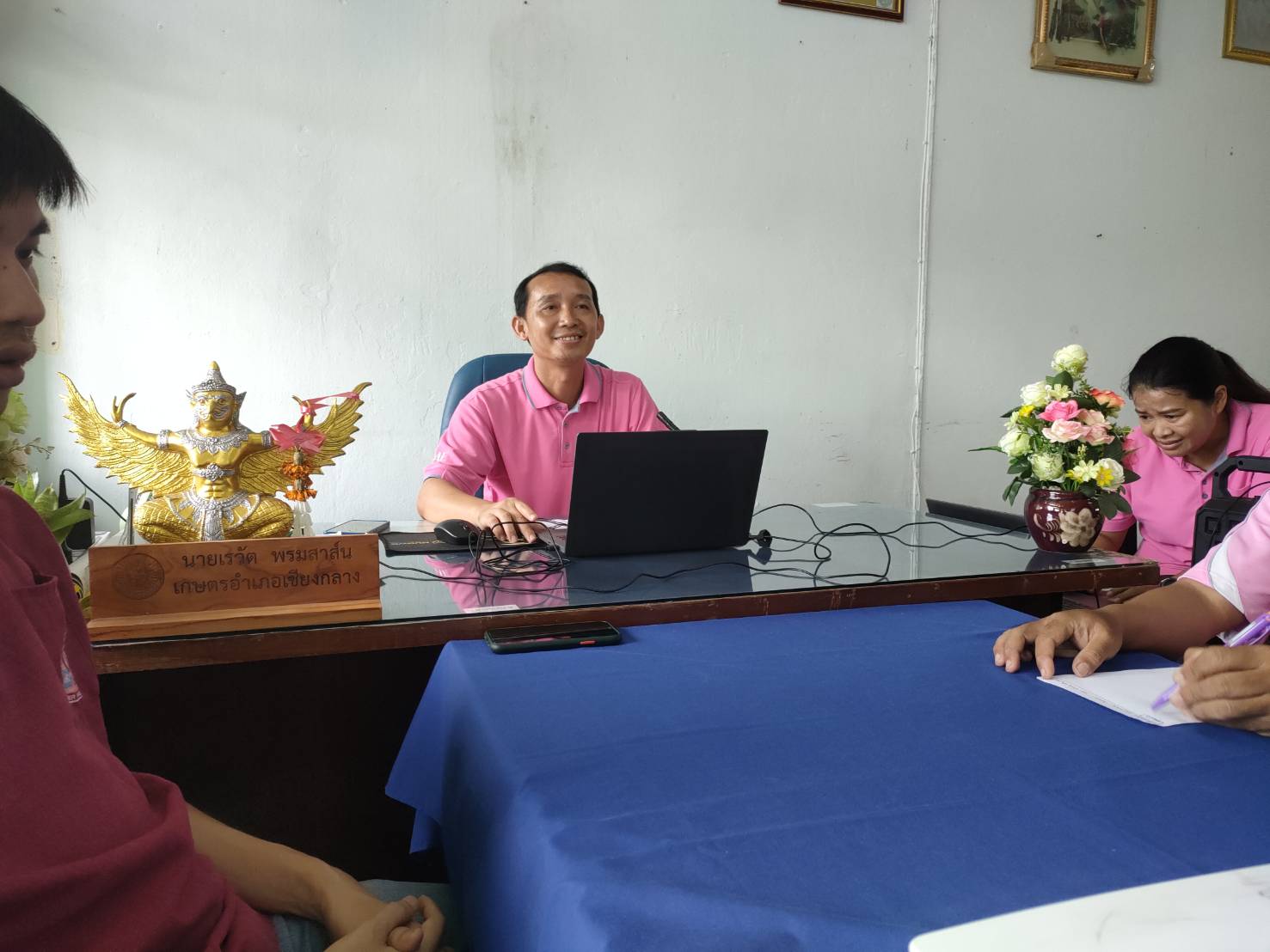 วันที่ 22 สิงหาคม 2566 เวลา 13.30 น. นายเรวัต พรมสาส์น เกษตรอำเภอเชียงกลาง พร้อมด้วยเจ้าหน้าที่สำนักงานเกษตรอำเภอเชียงกลาง รับการนิเทศงานตามระบบส่งเสริมการเกษตร T & V System จากสำนักงานเกษตรจังหวัดน่าน นำโดยนางอุมาพร ดีพรมกุล หัวหน้ากลุ่มอารักขาพืช พร้อมคณะ ผ่านระบบออนไลน์ Zoom meeting เพื่อติดตามการขับเคลื่อนงานตามระบบส่งเสริมการเกษตรในพื้นที่ สนับสนุนการปฏิบัติงาน การแก้ไขปัญหา อุปสรรค ตลอดจนให้ข้อเสนอแนะในการดำเนินงาน ณ ห้องประชุมสำนักงานเกษตรอำเภอเชียงกลาง จังหวัดน่าน โดยมีนายศักดิ์สิทธิ์ ศรีวิชัย เกษตรจังหวัดน่าน เข้าร่วมสังเกตการณ์และให้คำแนะนำในการดำเนินงานฯ ในการนิเทศงานฯ ครั้งนี้