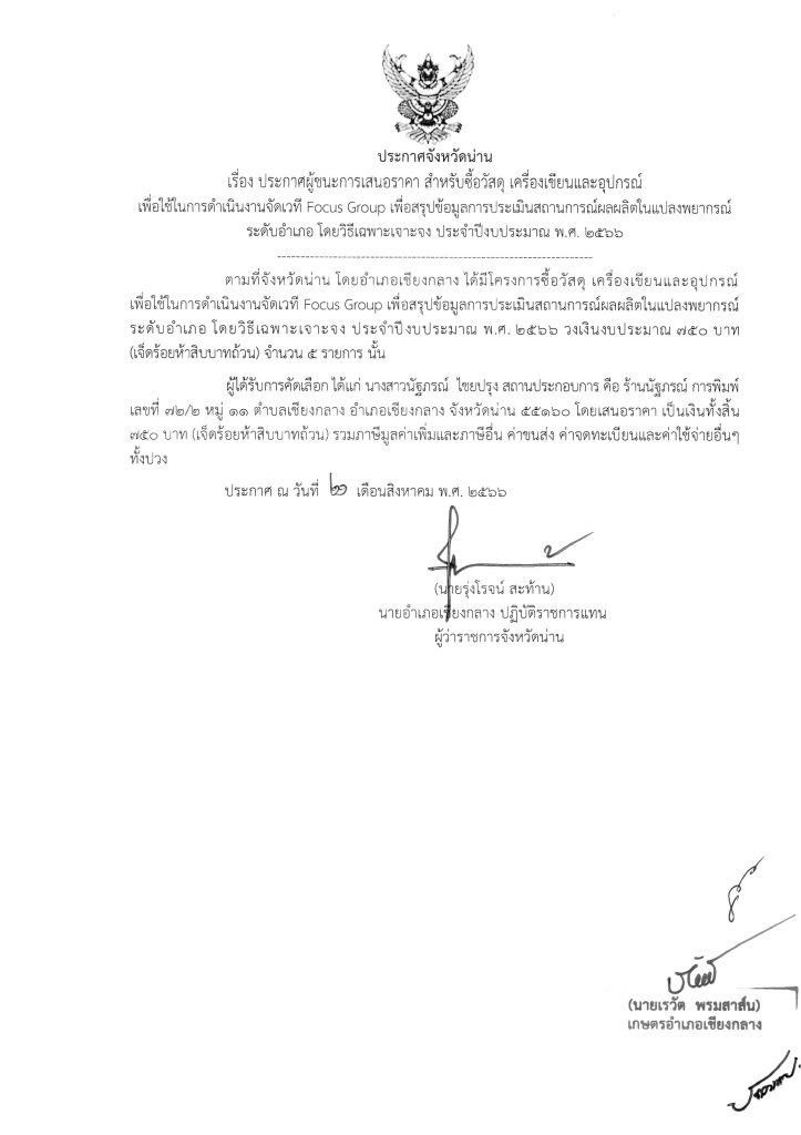 แนะแนวเรื่อง ประกาศจังหวัดน่าน เรื่อง ประกาศผู้ชนะการเสนอราคา สำหรับงานจ้างเหมาออกแบบและจัดทำสติกเกอร์ติดบรรจุภัณฑ์ฯ ประจำปีงบประมาณ พ.ศ. 2566 โดยวิธีเฉพาะเจาะจง ประกาศจังหวัดน่าน เรื่อง ประกาศผู้ชนะการเสนอราคา โครงการจัดซื้อวัสดุการเกษตร สำหรับดำเนินการพัฒนาศักยภาพ ศพก. (ศูนย์ฯหลัก) โดยวิธีเฉพาะเจาะจง