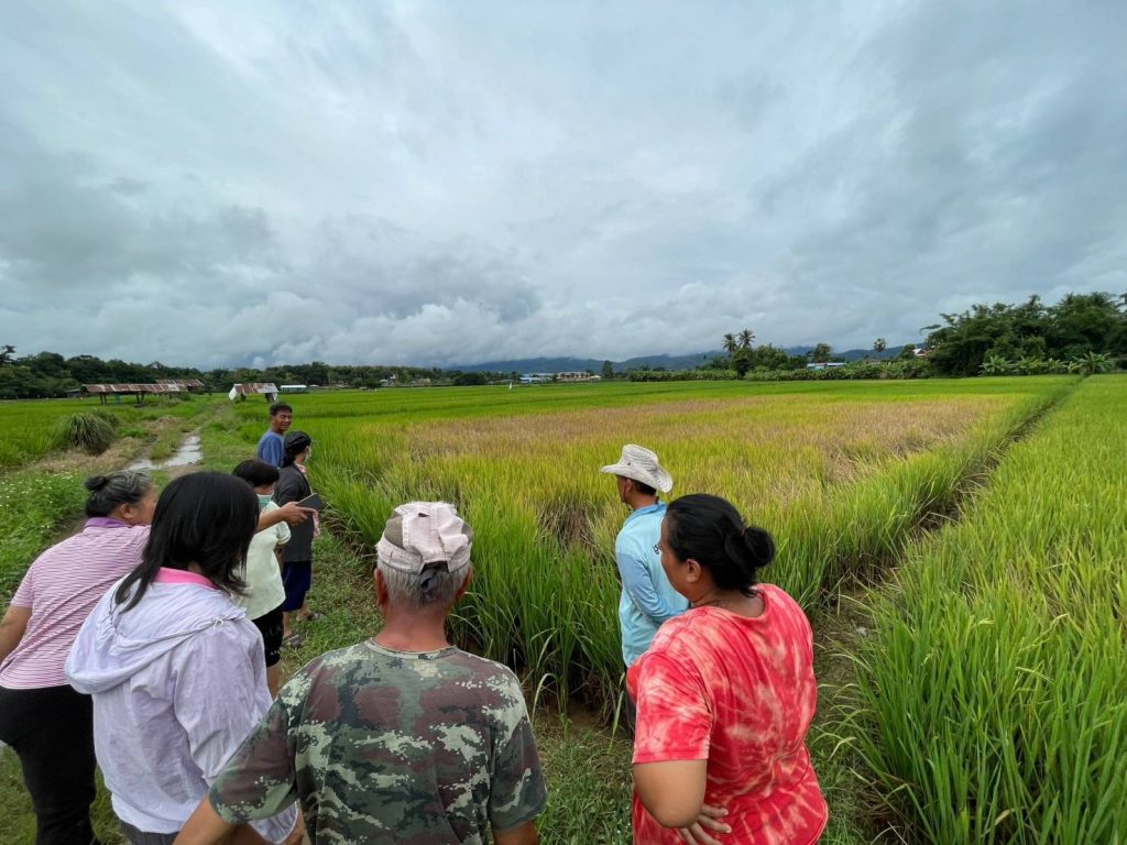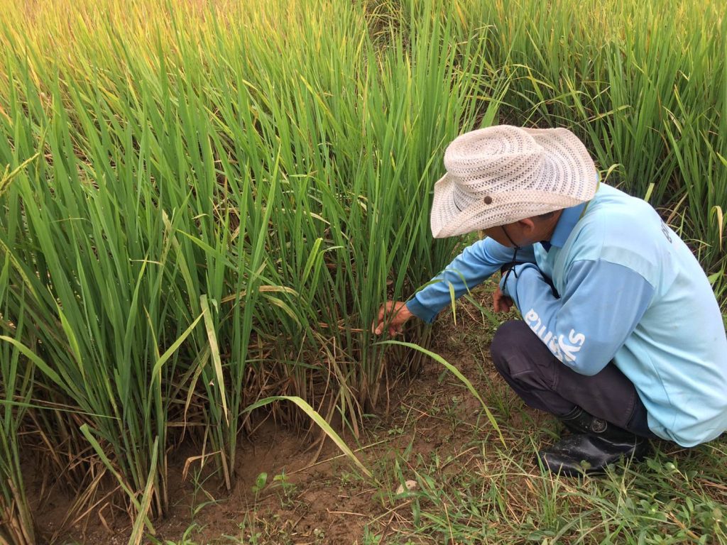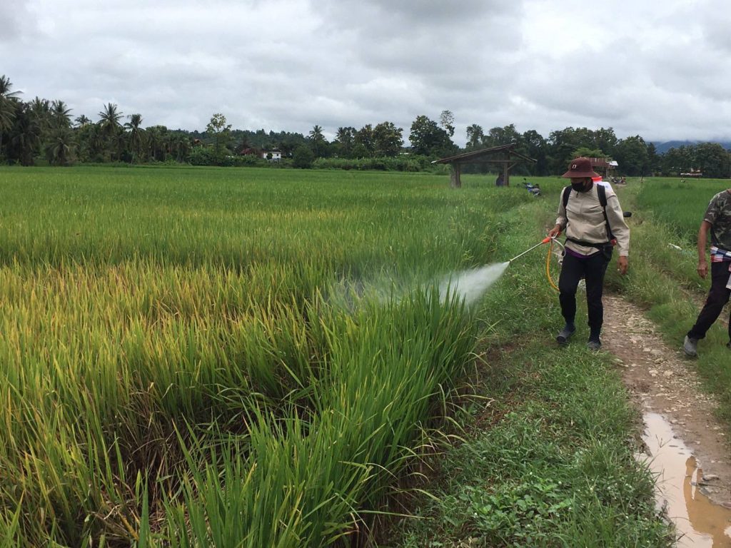 วันที่ 19 กันยายน 2566 นายเรวัต พรมสาส์น วันที่ 19 กันยายน 2566 นายเรวัต พรมสาส์น เกษตรอำเภอเชียงกลาง มอบหมายให้เจ้าหน้าที่สำนักงานเกษตรอำเภอเชียงกลาง ร่วมกับผู้นำชุมชน ลงพื้นที่สำรวจโรคและแมลงศัตรูพืชในนาข้าวระยะตั้งท้องและออกรวง พบการระบาดของเพลี้ยกระโดดสีน้ำตาล ทำให้ต้นข้าวมีอาการไหม้ (hopperburn) ใบเหลืองแห้งคล้ายถูกน้ำร้อนลวก และแห้งตายเป็นหย่อมๆ ทั้งนี้ทางสำนักงานเกษตรอำเภอเชียงกลาง ได้ให้คำแนะนำการใช้สารเคมีที่ถูกต้องและปลอดภัยตามหลักวิชาการ โดยให้ทำการฉีดพ่นสารเคมีบูโพรเฟซิน 25% WP ร่วมกับไดโนทีฟูแรน 10% WP อัตราส่วนตามคำแนะนำบนฉลาก ผสมสารจับใบในบริเวณแปลงที่พบการระบาดและบริเวณแปลงข้างเคียง โดยใช้โดรนทางการเกษตรฉีดพ่นเพื่อควบคุมปริมาณศัตรูพืช พร้อมทั้งแนะนำแนวทางการป้องกันจำกัดเพลี้ยกระโดดสีน้ำตาล การสำรวจแปลงอย่างสม่ำเสมอและปลูกข้าวพันธุ์ต้านทานในฤดูกาลถัดไป ณ บ้านสบกอน หมู่ที่ 13 ตำบลเชียงกลาง อำเภอเชียงกลาง จังหวัดน่าน มอบหมายให้เจ้าหน้าที่สำนักงานเกษตรอำเภอเชียงกลาง ร่วมกับผู้นำชุมชน ลงพื้นที่สำรวจโรคและแมลงศัตรูพืชในนาข้าวระยะตั้งท้องและออกรวง พบการระบาดของเพลี้ยกระโดดสีน้ำตาล ทำให้ต้นข้าวมีอาการไหม้ (hopperburn) ใบเหลืองแห้งคล้ายถูกน้ำร้อนลวก และแห้งตายเป็นหย่อมๆ ทั้งนี้ทางสำนักงานเกษตรอำเภอเชียงกลาง ได้ให้คำแนะนำการใช้สารเคมีที่ถูกต้องและปลอดภัยตามหลักวิชาการ โดยให้ทำการฉีดพ่นสารเคมีบูโพรเฟซิน 25% WP ร่วมกับไดโนทีฟูแรน 10% WP อัตราส่วนตามคำแนะนำบนฉลาก ผสมสารจับใบในบริเวณแปลงที่พบการระบาดและบริเวณแปลงข้างเคียง โดยใช้โดรนทางการเกษตรฉีดพ่นเพื่อควบคุมปริมาณศัตรูพืช พร้อมทั้งแนะนำแนวทางการป้องกันจำกัดเพลี้ยกระโดดสีน้ำตาล การสำรวจแปลงอย่างสม่ำเสมอและปลูกข้าวพันธุ์ต้านทานในฤดูกาลถัดไป ณ บ้านสบกอน หมู่ที่ 13 ตำบลเชียงกลาง อำเภอเชียงกลาง จังหวัดน่าน
