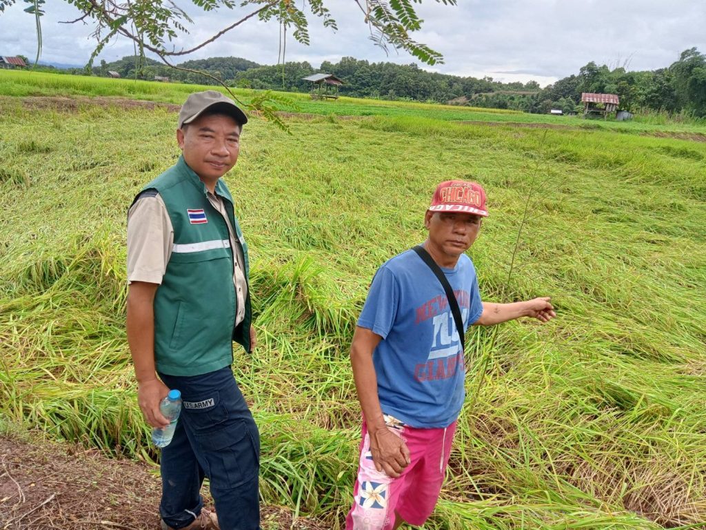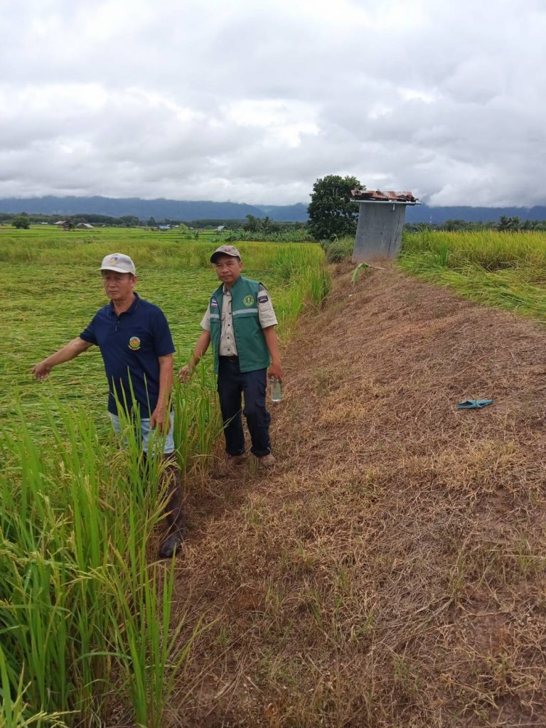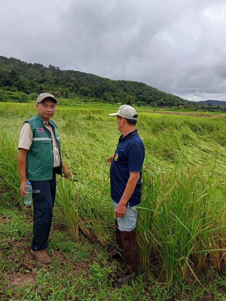 วันที่ 9 ตุลาคม 2566 นายเรวัต พรมสาส์น เกษตรอำเภอเชียงกลาง มอบหมายให้นายเมธี มะลิลม นักวิชาการส่งเสริมการเกษตรชำนาญการ และนางสาวนิลาวรรณ สุโรพันธ์ นักวิชาการส่งเสริมการเกษตรปฏิบัติการ ลงพื้นที่สร้างการรับรู้และทำความเข้าใจให้กับเกษตรกร ที่เกิดความเสียหายด้านพืช (ข้าว) จากวาตภัย เมื่อวันที่ 7 ตุลาคม 2566 ในพื้นที่ หมู่ 12 ตำบลเปือ และหมู่ 10 ตำบลเชียงกลาง อำเภอเชียงกลาง จังหวัดน่าน ทำให้เกษตรกรได้เข้าใจ กฎเกณฑ์การช่วยเหลือภัยพิบัติ และมีความรู้ในการดูแลข้าว สามารถเก็บผลผลิตได้ต่อไป