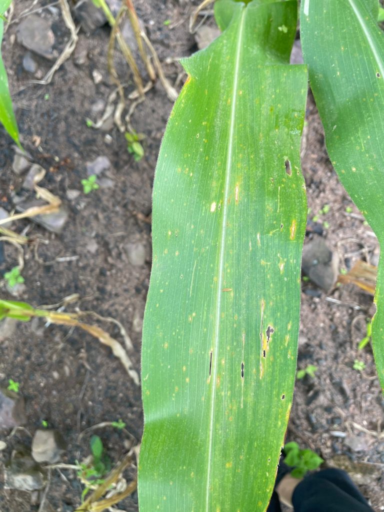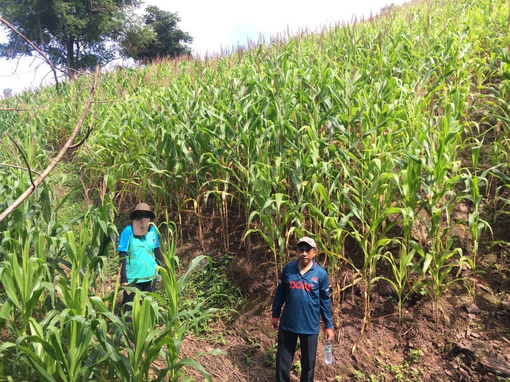 วันที่ 19 ตุลาคม 2566 นายเรวัต พรมสาส์น เกษตรอำเภอเชียงกลาง มอบหมายให้เจ้าหน้าที่สำนักงานเกษตรอำเภอเชียงกลาง ลงพื้นที่สำรวจโรคและแมลงศัตรูพืชในแปลงข้าวโพดเลี้ยงสัตว์ของเกษตรกร จากการสำรวจพบต้นข้าวโพดมีอาการโรคใบจุด และพบอาการขาดธาตุอาหารของพืช เช่น ไนโตรเจน ฟอสฟอรัส ทั้งนี้ทางเจ้าหน้าที่สำนักงานเกษตรอำเภอเชียงกลาง ได้ให้คำแนะนำการใช้สารเคมีที่ถูกต้องและปลอดภัยตามหลักวิชาการ และการใส่ปุ๋ยตามช่วงระยะการเจริญเติบโตของพืช โดยให้ทำการฉีดพ่นสารเคมีโพรพิโคนาโซล ร่วมกับไดฟีโนโคนาโซล อัตราส่วนตามคำแนะนำบนฉลาก ผสมสารจับใบ และใส่ปุ๋ยสูตร 18-46-0 โรยข้างต้นแล้วกลบ ในอัตรา 20–25 กิโลกรัม/ไร่ พร้อมทั้งแนะนำให้มีการสำรวจแปลงอย่างสม่ำเสมอ และเก็บตัวอย่างดินนำไปวิเคราะห์ เพื่อหาสูตรปุ๋ยที่เหมาะสมกับพื้นที่ตามความต้องการของพืชในฤดูกาลปลูกถัดไป ณ บ้านกอก หมู่ที่ 8 ตำบลเชียงกลาง อำเภอเชียงกลาง จังหวัดน่าน