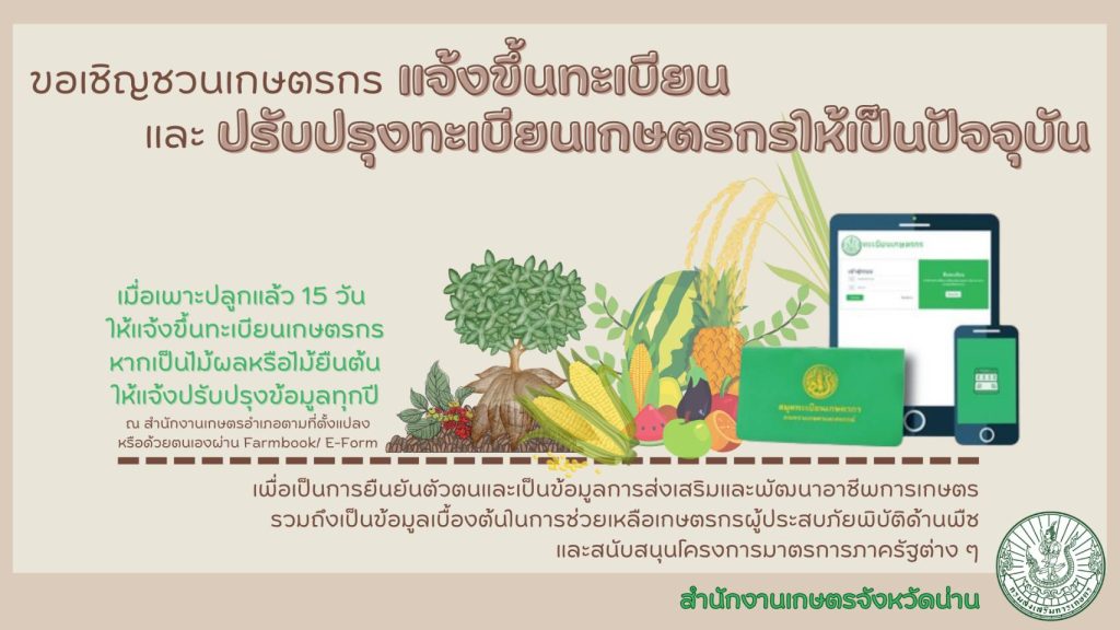 ขอเชิญชวนเกษตรกรขึ้นทะเบียนและปรับปรุงทะเบียนเกษตรกรให้เป็นปัจจุบัน