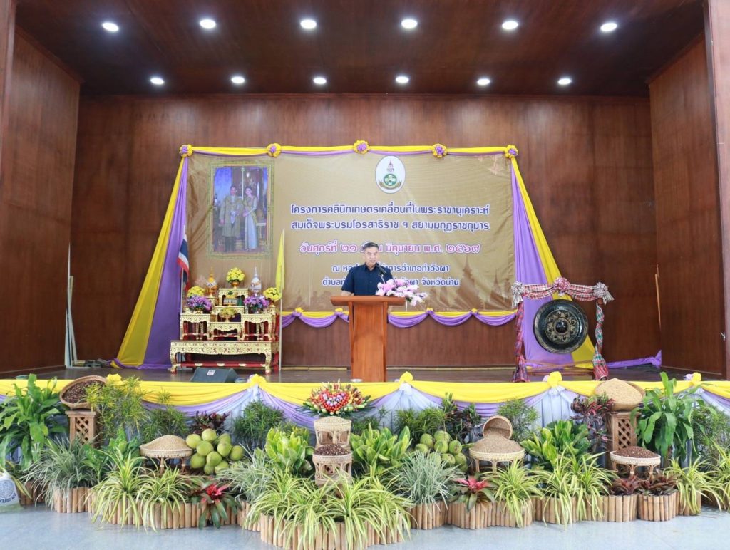 วันที่ 21 มิถุนายน 2567 นายเรวัต พรมสาส์น เกษตรอำเภอเชียงกลาง พร้อมด้วยนายเมธี มะลิลม นักวิชาการส่งเสริมการเกษตรชำนาญการ และนางสาวนิลาวรรณ สุโรพันธ์ นักวิชาการส่งเสริมการเกษตรปฏิบัติการ เข้าร่วมงานโครงการคลินิกเกษตรเคลื่อนที่ในพระราชานุเคราะห์ สมเด็จพระบรมโอรสาธิราชฯ สยามมกุฎราชกุมาร ครั้งที่ 3/2567 มีวัตถุประสงค์เพื่อให้เกษตรกรที่มีปัญหาด้านการเกษตร ในพื้นที่ห่างไกล สามารถเข้าถึงการบริการทางวิชาการ และได้รับการแก้ไขปัญหาด้านการเกษตรอย่างครบวงจร ในการให้บริการและแก้ไขปัญหาทางการเกษตรร่วมกัน โดยมีนายเทวา ปัญญาบุญ รองผู้ว่าราชการจังหวัดน่าน เป็นประธานในพิธีเปิด ณ หอประชุมที่ว่าการอำเภอท่าวังผา ตำบลท่าวังผา อำเภอท่าวังผา จังหวัดน่าน