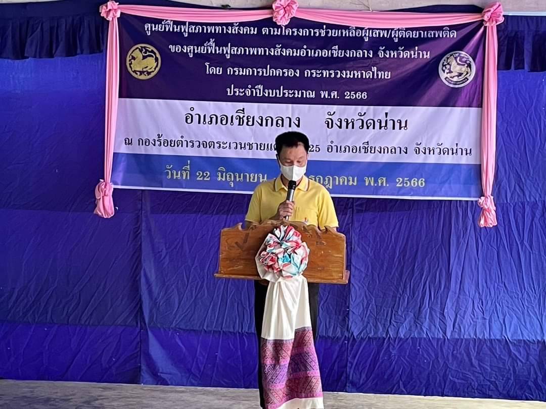 วันที่ 27 มิถุนายน 2566 เวลา 08.30 น. นายเรวัต พรมสาส์น เกษตรอำเภอเชียงกลาง ร่วมพิธีเปิดโครงการช่วยเหลือผู้เสพ/ผู้ติดยาเสพติด ของศูนย์ฟื้นฟูสภาพทางสังคม อำเภอเชียงกลาง จังหวัดน่าน (รุ่นที่ 2) โดยมีนายรุ่งโรจน์ สะท้าน นายอำเภอเชียงกลาง เป็นประธานในพิธีเปิด ณ กองร้อยตำรวจตระเวนชายแดนที่ 325 ตำบลเชียงกลาง อำเภอเชียงกลาง จังหวัดน่าน