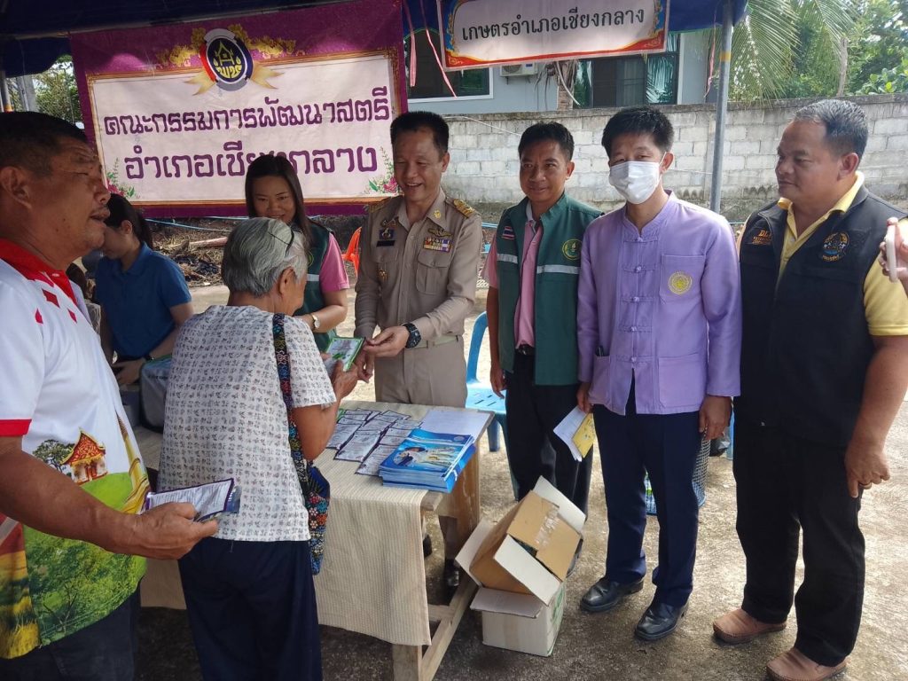 วันที่ 16 กรกฎาคม 2567 เวลา 09.00 น. นายเรวัต พรมสาส์น เกษตรอำเภอเชียงกลาง มอบหมายให้นายเมธี มะลิลม นักวิชาการส่งเสริมการเกษตรชำนาญการ และนางสาวนิลาวรรณ สุโรพันธ์ นักวิชาการส่งเสริมการเกษตรปฏิบัติการ เข้าร่วมกิจกรรมโครงการอำเภอยิ้ม…เคลื่อนที่ ประจำเดือนกรกฎาคม 2567 ณ หอประชุมหมู่บ้าน บ้านห้วยเลื่อน หมู่ที่ 6 ตำบลเปือ อำเภอเชียงกลาง จังหวัดน่าน โดยมีนายรุ่งโรจน์ สะท้าน นายอำเภอเชียงกลาง เป็นประธาน ในการนี้ได้ชี้แจงประชาสัมพันธ์เรื่องการขึ้นทะเบียนเกษตรกรการปรับปรุงทะเบียนเกษตรกรให้เป็นปัจจุบัน และประชาสัมพันธ์ เรื่อง งาน “เกษตรแฟร์ น่านเหนือ ลำไย ยืน 1” ประจำปี 2567 ในวันที่ 24 – 30 เดือนกรกฎาคม พ.ศ. 2567