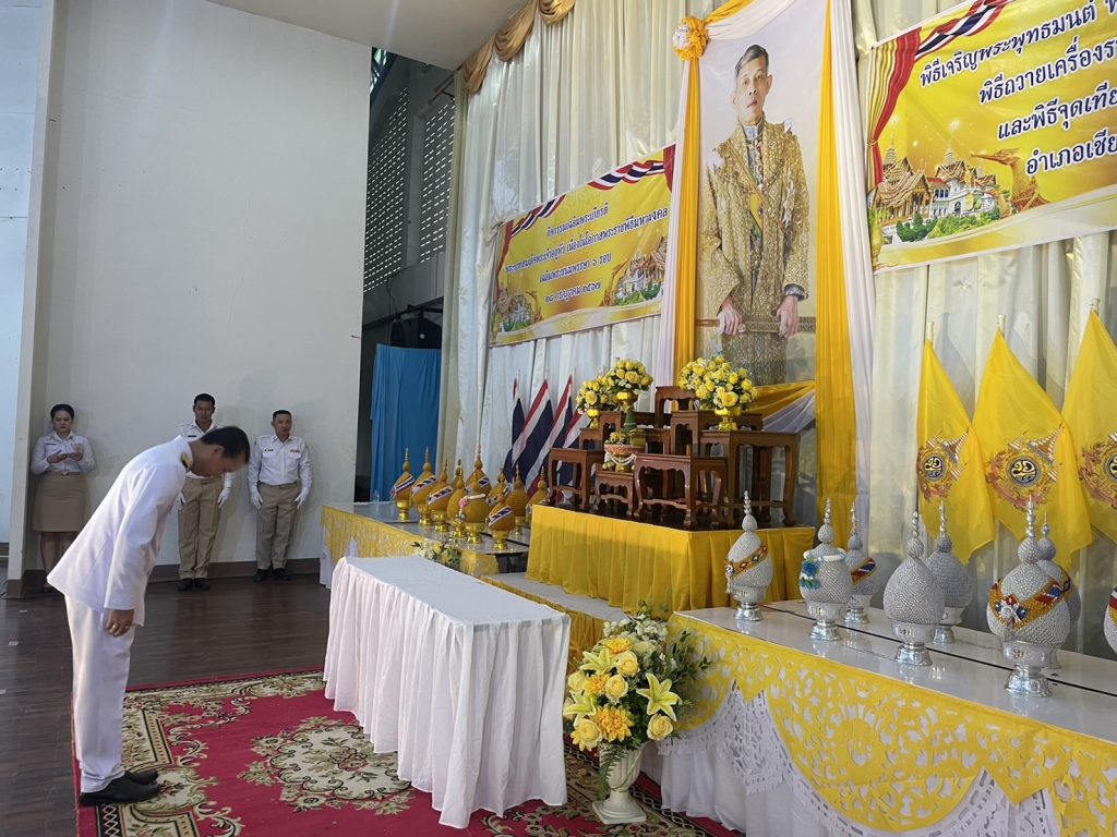 วันที่ 28 กรกฎาคม 2567 เวลา 17.30 น. นายเรวัต พรมสาส์น เกษตรอำเภอเชียงกลาง พร้อมด้วยเจ้าหน้าที่สำนักงานเกษตรอำเภอเชียงกลาง เข้าร่วมพิธีพิธีถวายเครื่องราชสักการะและวางพานพุ่ม และพิธีจุดเทียนถวายพระพรชัยมงคล เฉลิมพระเกียรติพระบาทสมเด็จพระเจ้าอยู่หัว เนื่องในโอกาสพระราชพิธีมหามงคลเฉลิมพระชนมพรรษา 6 รอบ 28 กรกฎาคม 2567 โดยมี นายรุ่งโรจน์ สะท้าน นายอำเภอเชียงกลาง เป็นประธานในพิธี ณ หอประชุมที่ว่าการอำเภอเชียงกลาง อำเภอเชียงกลาง จังหวัดน่าน