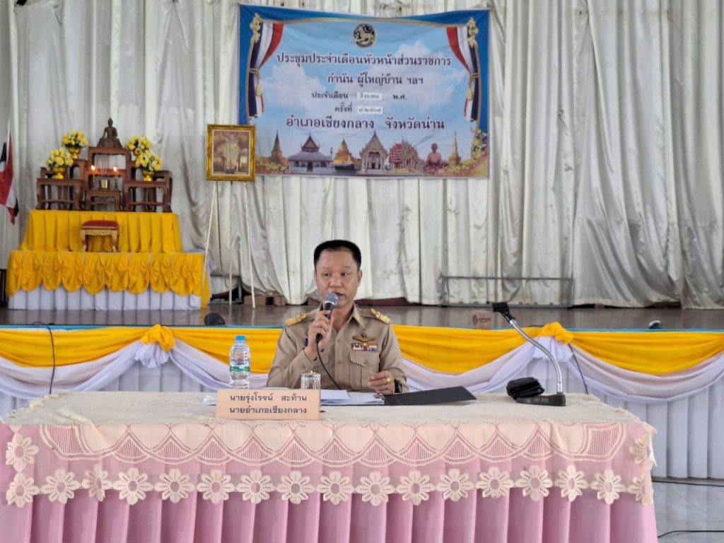 วันที่ 5 สิงหาคม 2567 นายเรวัต พรมสาส์น เกษตรอำเภอเชียงกลาง มอบหมายให้นายเมธี มะลิลม นักวิชาการส่งเสริมการเกษตรชำนาญการ เข้าร่วมประชุมประจำเดือนหัวหน้าส่วนราชการ กำนัน และผู้ใหญ่บ้าน ประจำเดือนสิงหาคม 2567 ครั้งที่ 8/2567 เพื่อรับฟังข้อราชการสำคัญ และแนวทางในการปฏิบัติในพื้นที่ พร้อมทั้งเร่งรัดการขึ้นทะเบียนและปรับปรุงทะเบียนเกษตรกร ปี 2567 โดยมีนายรุ่งโรจน์ สะท้าน นายอำเภอเชียงกลาง เป็นประธานฯ ณ หอประชุมที่ว่าการอำเภอเชียงกลาง อำเภอเชียงกลาง จังหวัดน่าน