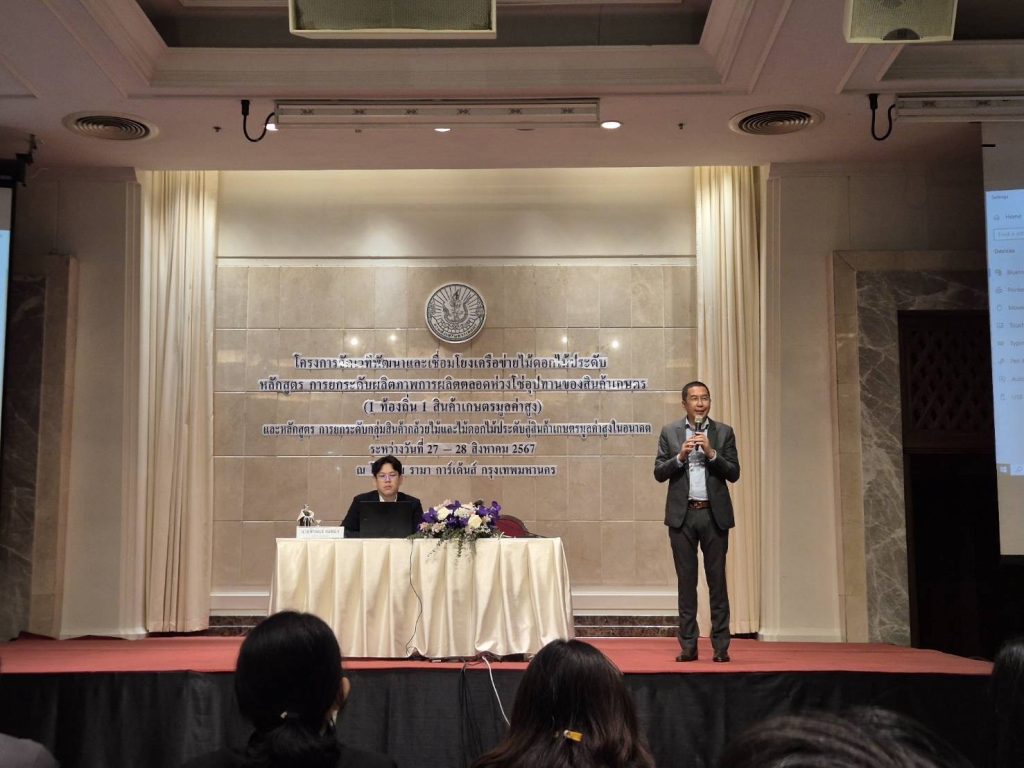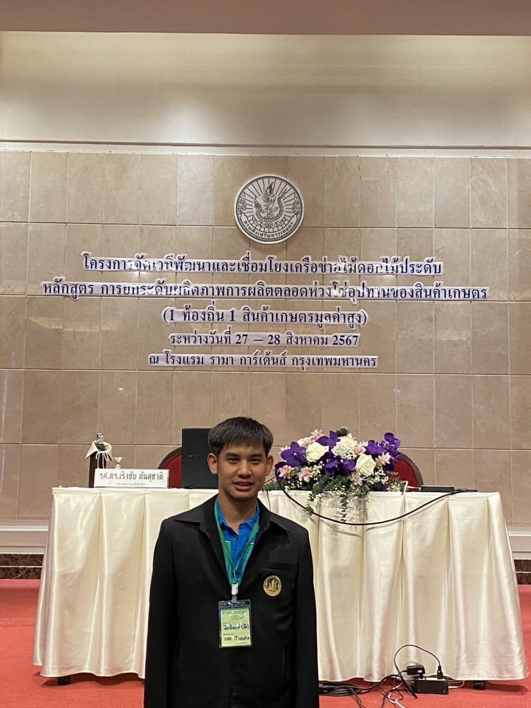 วันที่ 27 -28 สิงหาคม 2567 นายเรวัต พรมสาส์น เกษตรอำเภอเชียงกลาง มอบหมายให้ นายสิทธิพงษ์ ปรังการ นักวิชาการส่งเสริมการเกษตรชำนาญการ เข้าร่วมโครงการจัดเวทีพัฒนาและเชื่อมโยงเครือข่ายไม้ดอกไม้ประดับ หลักสูตร การยกระดับผลิตภาพการผลิตตลอดห่วงโซ่อุปทานของสินค้าเกษตร (1 ท้องถิ่น 1 สินค้าเกษตรมูลค่าสูง) โดยมี นายพีรพันธ์ คอทอง อธิบดีกรมส่งเสริมการเกษตร เป็นผู้เปิดโครงการและบรรยายพิเศษ เรื่อง การปรับตัวหรือปรับเปลี่ยนจากการทำเกษตรรูปแบบเดิมไปสู่ “การทำเกษตรมูลค่าสูง” ณ โรงแรม รามา การ์เด้นส์ กรุงเทพมหานคร