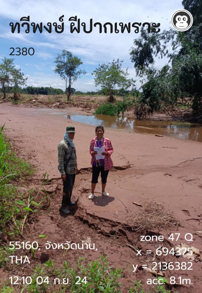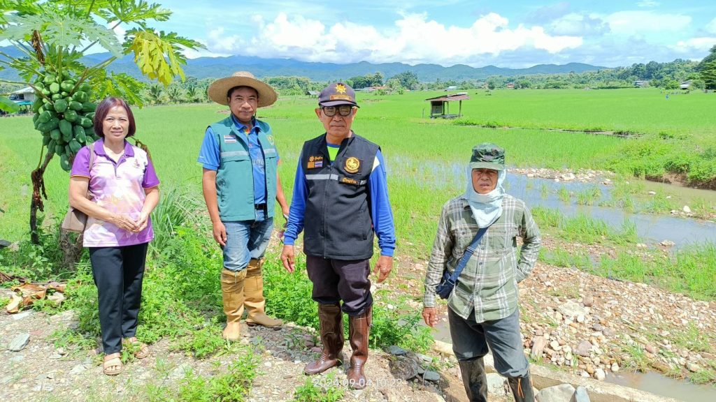 วันที่ 4 กันยายน 2567 นายเรวัต พรมสาส์น เกษตรอำเภอเชียงกลาง มอบหมายให้นายเมธี มะลิลม นักวิชาการส่งเสริมการเกษตรชำนาญการ พร้อมด้วยผู้ใหญ่บ้าน ผู้ช่วยผู้ใหญ่บ้าน อาสาสมัครเกษตรหมู่บ้าน ลงพื้นที่สำรวจความเสียหายจากเหตุอุทกภัย น้ำป่าไหลหลาก ในห้วงตั้งแต่วันที่ 21-27 สิงหาคม 2567 และให้คำแนะนำในการขอรับการช่วยเหลือแก่ผู้ประสบภัยพิบัติ ให้เป็นไปตามระเบียบการให้ความช่วยเหลือของทางราชการต่อไป ณ บ้านหนองแดง หมู่ที่ 1 ตำบลเปือ อำเภอเชียงกลาง จังหวัดน่าน