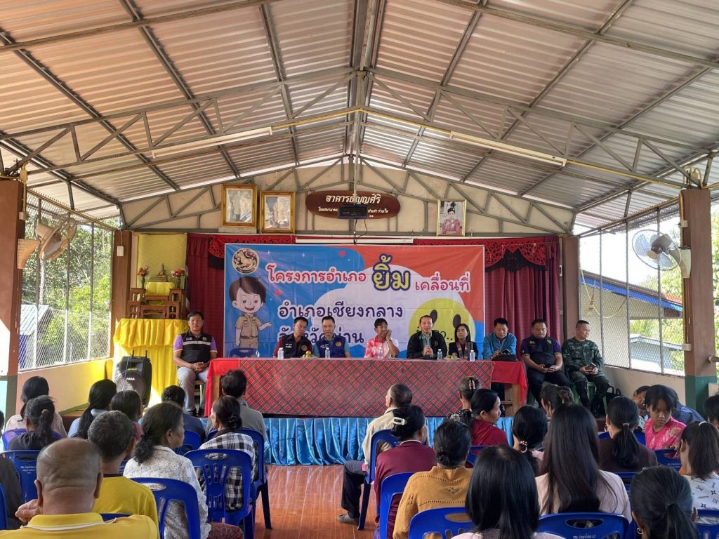 วันที่ 20 พฤศจิกายน 2567 เวลา 09.00 น. นายเรวัต พรมสาส์น เกษตรอำเภอเชียงกลาง พร้อมด้วยนางสาวจิลลาภัทร ทีฆาวงค์ นักวิชาการส่งเสริมการเกษตรปฏิบัติการ และนางสาวนิลาวรรณ สุโรพันธ์ นักวิชาการส่งเสริมการเกษตรชำนาญการ เข้าร่วมกิจกรรมโครงการอำเภอยิ้ม…เคลื่อนที่ ประจำเดือนพฤศจิกายน 2567 ณ หอประชุมโรงเรียนบ้านผาน้ำย้อย หมู่ที่ 5 ตำบลพญาแก้ว อำเภอเชียงกลาง จังหวัดน่าน โดยมีนายรุ่งโรจน์ สะท้าน นายอำเภอเชียงกลาง เป็นประธาน ในการนี้ได้ชี้แจงประชาสัมพันธ์เรื่อง การขึ้นทะเบียนเกษตรกรการปรับปรุงทะเบียนเกษตรกรให้เป็นปัจจุบัน และเน้นย้ำเรื่องการป้องกันและลดผลกระทบจากฝุ่นละอองขนาดเล็ก (PM. 2.5) พร้อมให้คำแนะนำการจัดการเศษวัสดุเหลือใช้ทางการเกษตรทดแทนการเผา