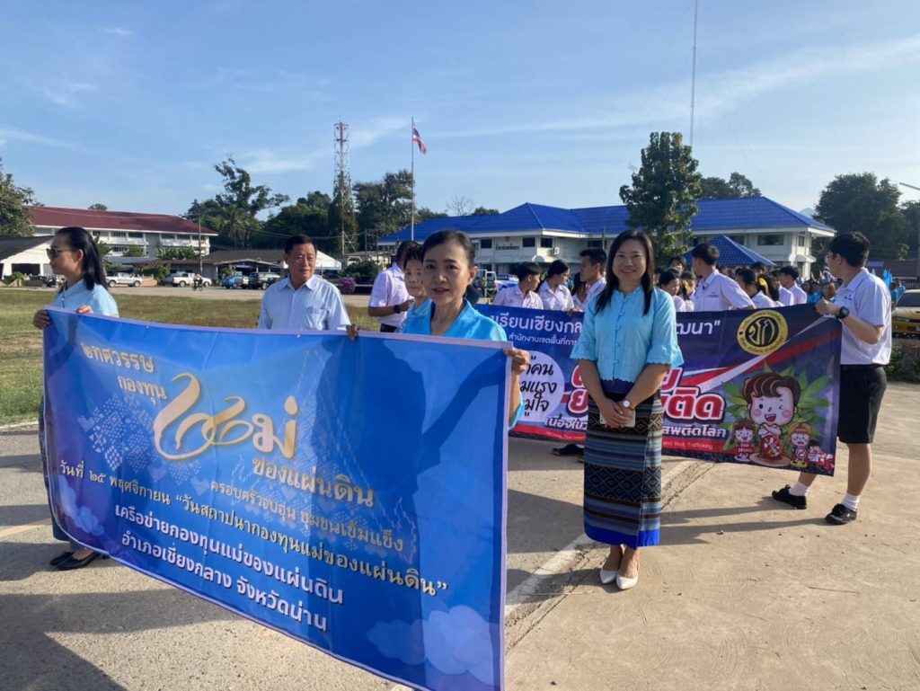 วันที่ 25 พฤศจิกายน 2567 เวลา 08.00 น. นายเรวัต พรมสาส์น เกษตรอำเภอเชียงกลาง มอบหมายให้นางสาวนิลาวรรณ สุโรพันธ์ นักวิชาการส่งเสริมการเกษตรปฏิบัติการ เข้าร่วมกิจกรรม เดินขบวนรณรงค์ประชาสัมพันธ์งานกองทุนแม่ของแผ่นดิน 25 พฤศจิกายน วันกองทุนแม่ของแผ่นดิน ภายใต้แนวคิด “2 ทศวรรษ กองทุนแม่ของแผ่นดิน ครอบครัวอบอุ่น ชุมชนแข็ง” อำเภอเชียงกลาง จังหวัดน่าน ณ หอประชุมที่ว่าการอำเภอเชียงกลาง จังหวัดน่าน