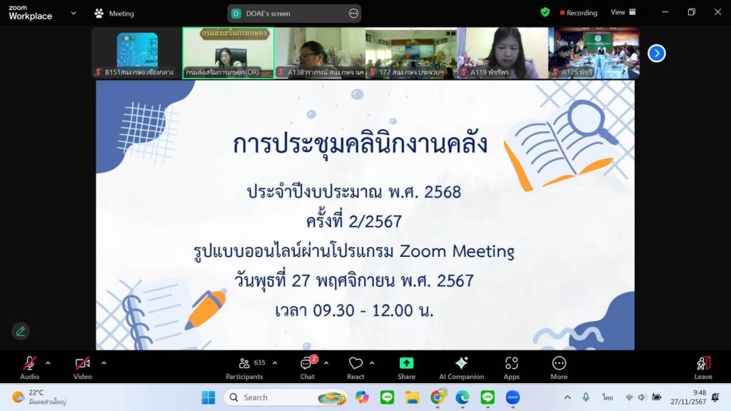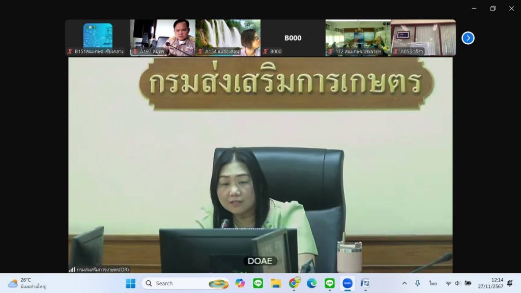 วันที่ 27 พฤศจิกายน 2567 เวลา 09.30 น. นายเรวัต พรมสาส์น เกษตรอำเภอเชียงกลาง มอบหมายให้เจ้าหน้าที่ธุรการประจำสำนักงานเกษตรอำเภอเชียงกลาง เข้าร่วมประชุมคลินิกงานคลังประจำปีงบประมาณ พ.ศ. 2568 ครั้งที่ 2/2567 เพื่อสร้างการรับรู้ แลกเปลี่ยนเรียนรู้การดำเนินงานจัดซื้อจัดจ้างของหน่วยงานฯ โดยประชุมในรูปแบบออนไลน์ผ่านโปรแกรม Zoom Meeting ณ ห้องประชุมสำนักงานเกษตรอำเภอเชียงกลาง จังหวัดน่าน