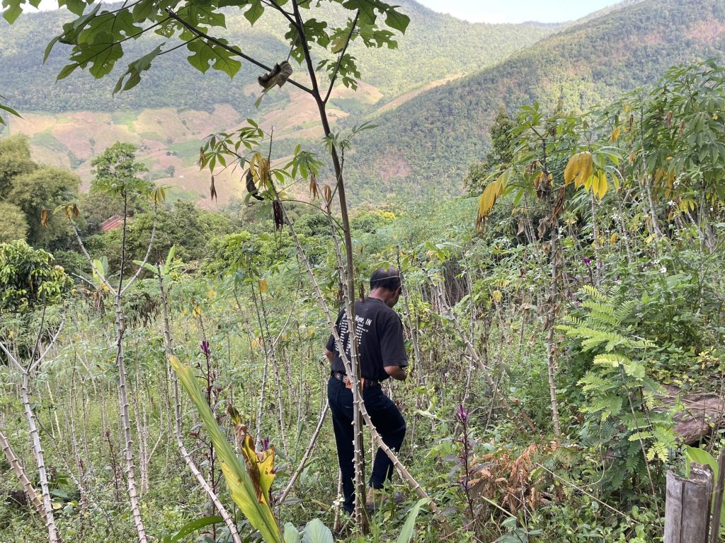 วันที่ 29 พฤศจิกายน 2567 นายเรวัต พรมสาส์น เกษตรอำเภอเชียงกลาง มอบหมายให้นางสาวจิลลาภัทร ทีฆาวงค์ นักวิชาการส่งเสริมการเกษตรปฎิบัติการ ลงพื้นที่สำรวจและประเมินพื้นที่ที่มีความเสี่ยงต่อการระบาดของโรคใบด่างมันสำปะหลัง ในพื้นที่บ้านผาน้ำย้อย หมู่ 5 ตำบลพญาแก้ว อำเภอเชียงกลาง จังหวัดน่าน ผลการสำรวจเบื้องต้นยังไม่พบการเกิดโรคใบด่างมันสำปะหลัง จึงได้ประชาสัมพันธ์ และขอความร่วมมือจากเกษตรกรในการหมั่นสำรวจแปลงอย่างสม่ำเสมอ เพื่อป้องกันการระบาดของโรคใบด่างมันสำปะหลังต่อไป