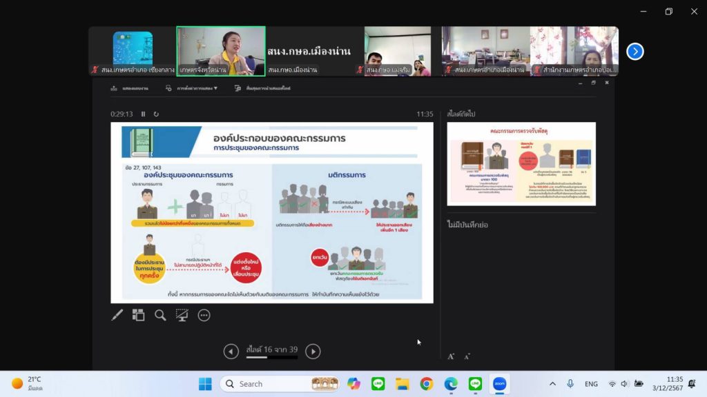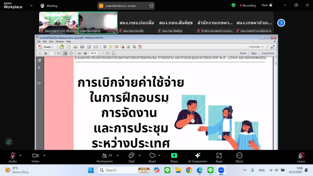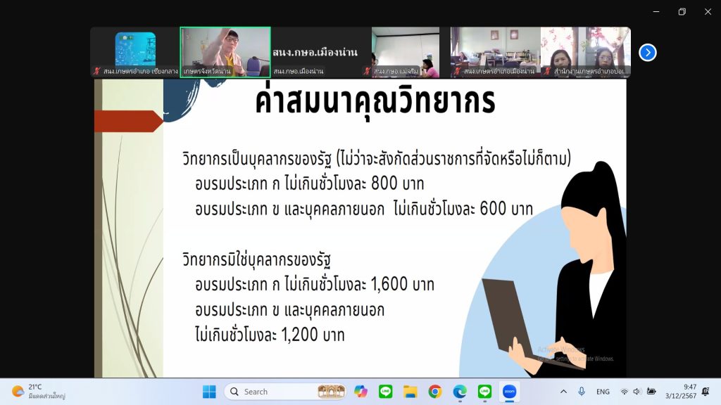 วันที่ 3 ธันวาคม 2567 เวลา 08.30 น. นายเรวัต พรมสาส์น เกษตรอำเภอเชียงกลาง พร้อมด้วย เจ้าหน้าที่สำนักงานเกษตรอำเภอเชียงกลาง เข้าร่วมการฝึกอบรม เพื่อสร้างความรู้ ความเข้าใจเกี่ยวกับการปฏิบัติงานการเงินและบัญชีการจัดซื้อจัดจ้างภาครัฐ โดยฝึกอบรมในรูปแบบออนไลน์ ผ่านโปรแกรม Zoom Meeting ณ ห้องประชุมสำนักงานเกษตรอำเภอเชียงกลาง จังหวัดน่าน