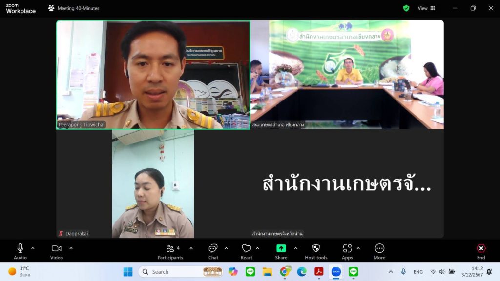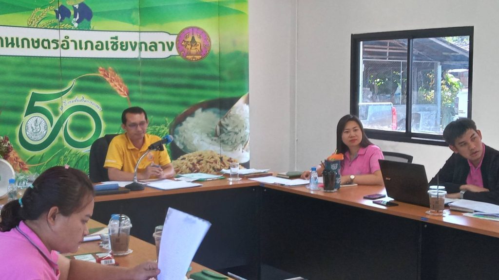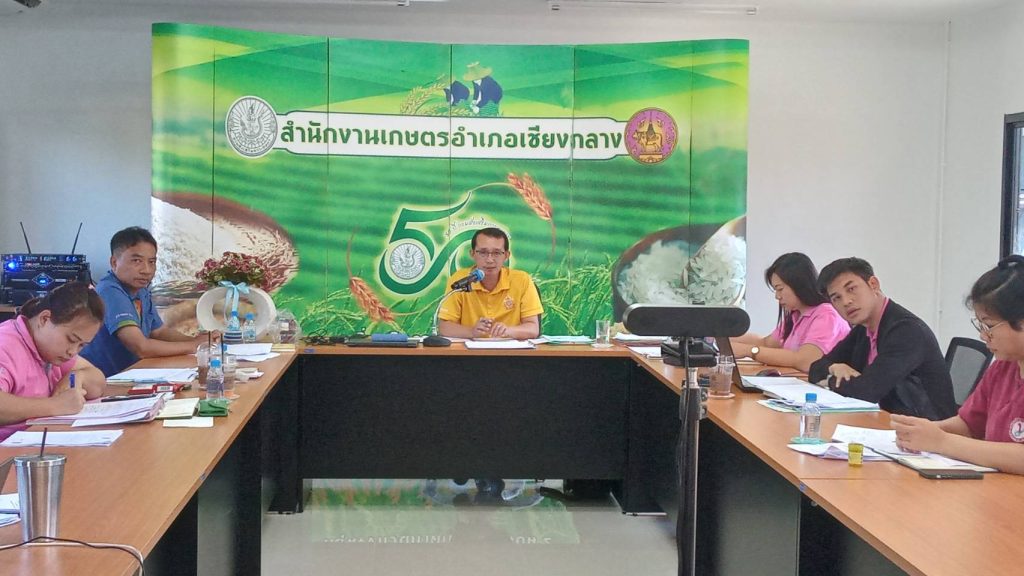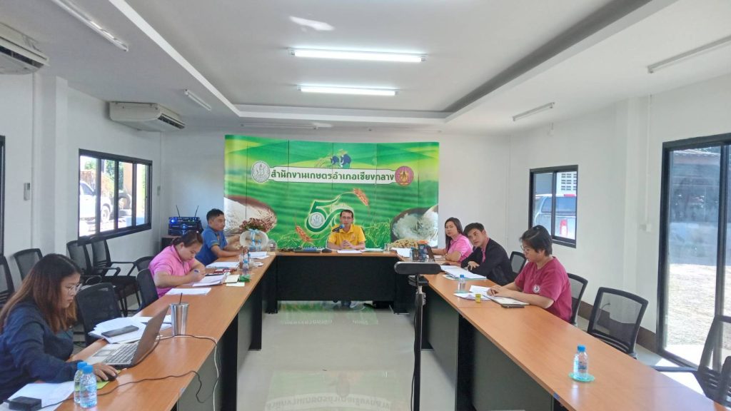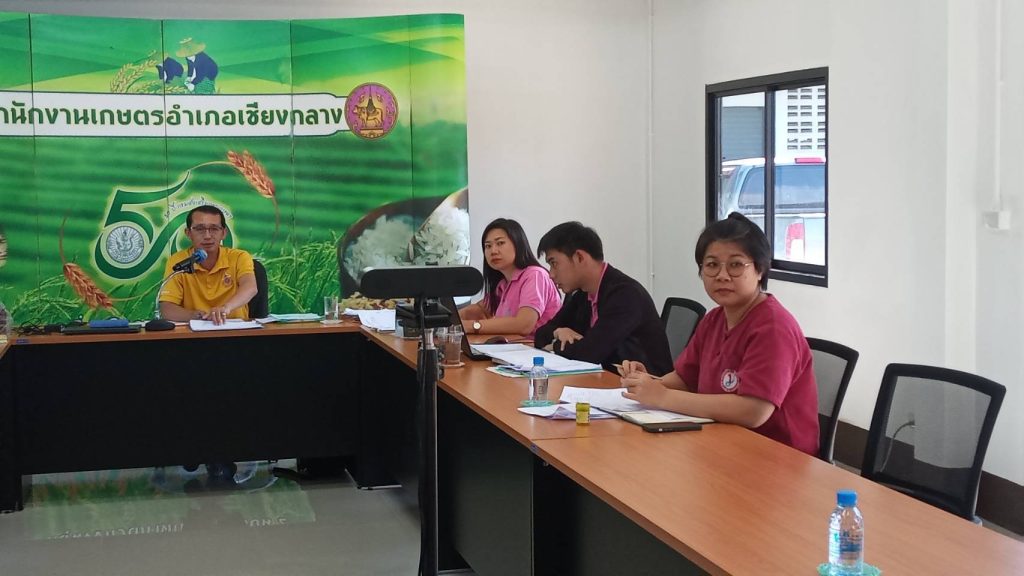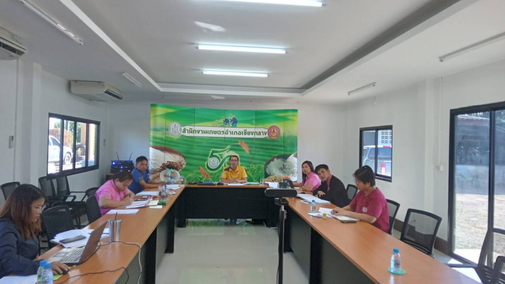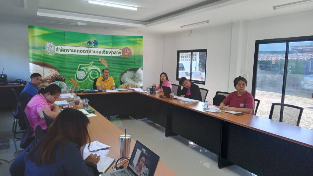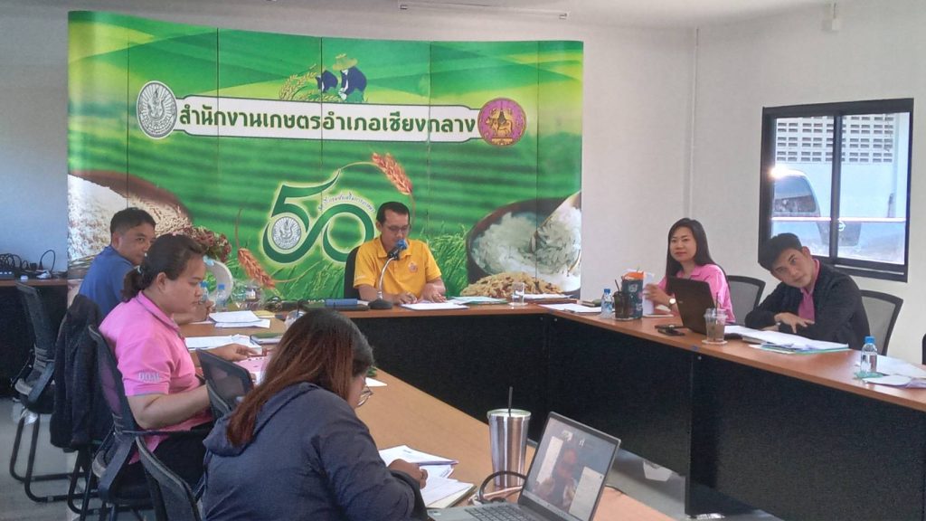 วันที่ 3 ธันวาคม 2567 เวลา 13.30 น. นายเรวัต พรมสาส์น เกษตรอำเภอเชียงกลาง พร้อมด้วย เจ้าหน้าที่สำนักงานเกษตรอำเภอเชียงกลาง ประชุมประจำเดือนตุลาคม (DM) ครั้งที่ 11/2567 เพื่อชี้แจงและรับทราบหัวข้อราชการ ติดตามความก้าวหน้าการดำเนินงานขับเคลื่อนโครงการตามนโยบายภาครัฐ และงานตามภารกิจต่างๆ มีประเด็นที่สำคัญคือ ชี้แจงวาระงานจากการประชุมประจำเดือนผู้บริหาร/เกษตรอำเภอ และร่วมกันวางแผนการปฏิบัติงานการดำเนินงานโครงการส่งเสริมการเกษตร ปีงบประมาณ พ.ศ. 2568 ณ ห้องประชุมสำนักงานเกษตรอำเภอเชียงกลาง จังหวัดน่าน โดยมีนายพีรพงษ์ ทิพวิไชย นักวิชาการส่งเสริมการเกษตรปฏิบัติการ และนางสาวดาวประกาย เมืองไชย นักวิชาการส่งเสริมการเกษตรปฏิบัติการ กลุ่มยุทธศาสตร์และสารสนเทศ สำนักงานเกษตรจังหวัดน่าน ร่วมประชุมผ่านระบบออนไลน์