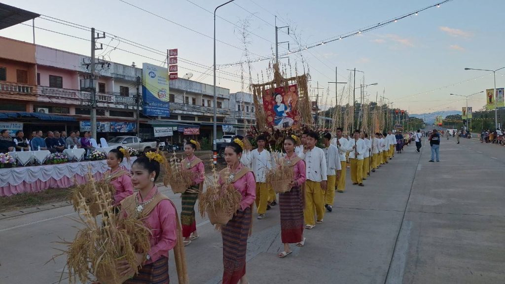 วันที่ 12 ธันวาคม 2567 เวลา 18.00 น. นายเรวัต พรมสาส์น เกษตรอำเภอเชียงกลาง พร้อมด้วยเจ้าหน้าที่สำนักงานเกษตรอำเภอเชียงกลาง เข้าร่วมพิธีเปิดงาน “ประจำปีสู่ขวัญข้าว และของดีอำเภอเชียงกลาง” ประจำปี 2567 กำหนดจัดขึ้นในห้วงวันที่ 8 – 14 ธันวาคม 2567 เพื่อส่งเสริมฟื้นฟูวัฒนธรรมและประเพณีที่เกี่ยวกับการผลิตข้าวของเกษตรกรอำเภอเชียงกลาง โดยมีนายบรรจง ขุนเพชร รองผู้ว่าราชการจังหวัดน่าน เป็นประธานในพิธีเปิดงาน ณ บ้านเจดีย์ หมู่ที่ 10 ตำบลเชียงกลาง อำเภอเชียงกลาง จังหวัดน่าน (บริเวณลานตลาดนัดคลองถมวันอังคาร/ด้านข้างสำนักงานเทศบาลตำบลเชียงกลาง)