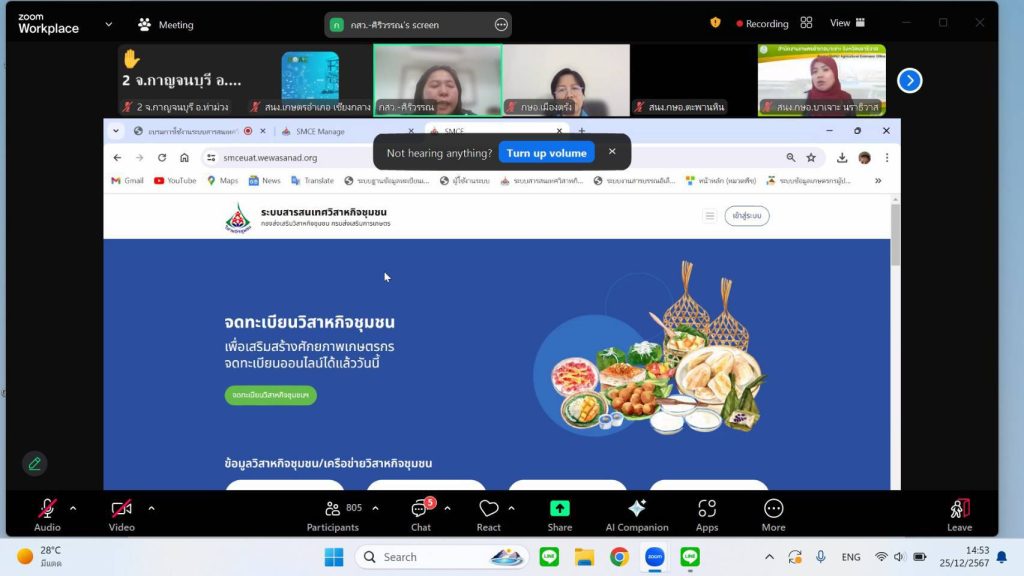 วันที่ 25 ธันวาคม 2567 นายเรวัต พรมสาส์น เกษตรอำเภอเชียงกลาง เข้าร่วมอบรมการใช้งานระบบสารสนเทศวิสาหกิจชุมชน โดยมีวัตถุประสงค์เพื่อสร้างความรู้ ความเข้าใจ ในการใช้งานระบบสารสนเทศวิสาหกิจชุมชน และชี้แจงแนวทางการดำเนินการต่อทะเบียน ประจำปี 2568 ผ่านระบบประชุมออนไลน์ Zoom Meeting ณ สำนักงานเกษตรอำเภอเชียงกลาง จังหวัดน่าน
