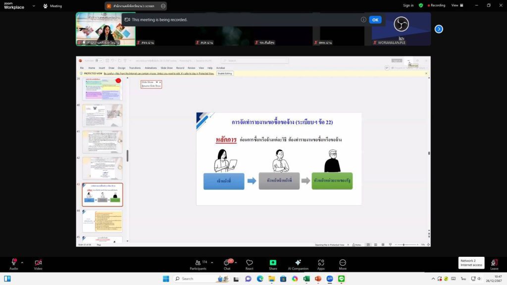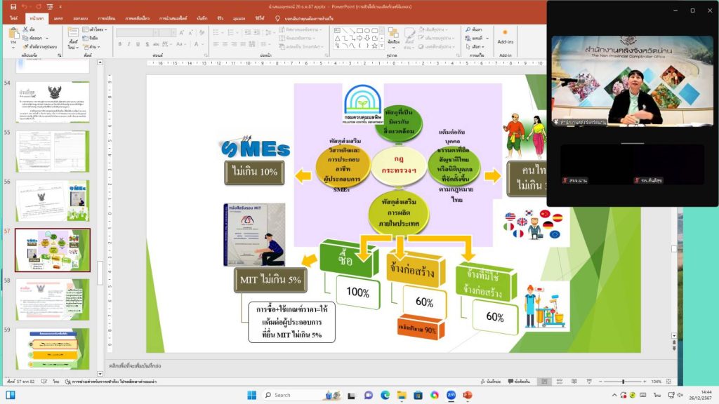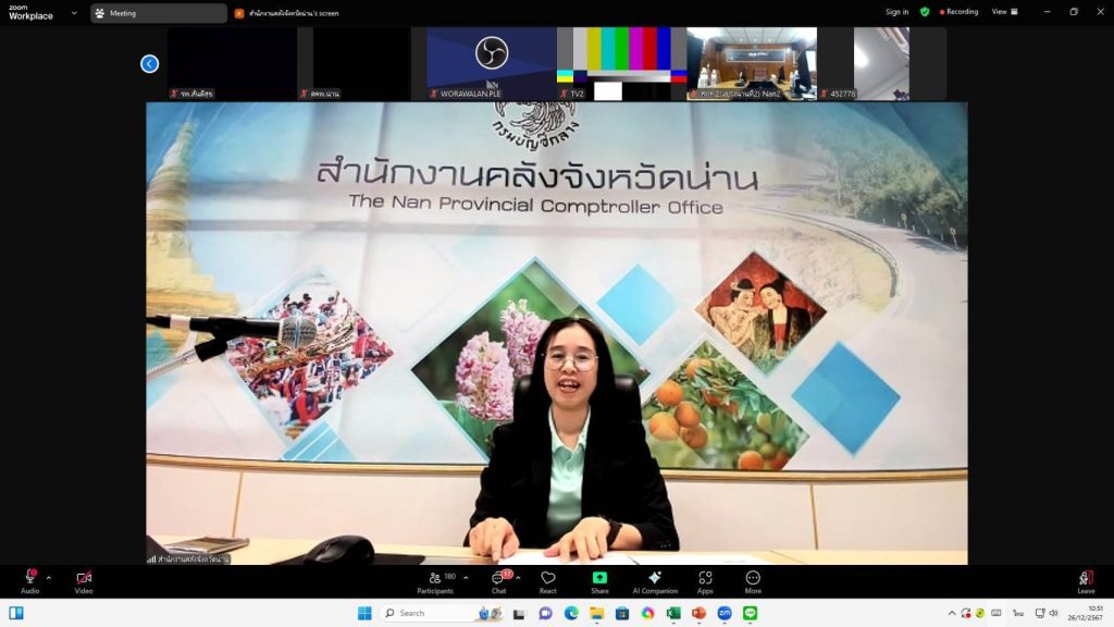 นที่ 26 เดือนธันวาคม พ.ศ. 2567 เวลา 08.30 น. นายเรวัต พรมสาส์น เกษตรอำเภอเชียงกลาง มอบหมายให้เจ้าหน้าที่ผู้ปฏิบัติงานด้านการจัดซื้อจัดจ้างของหน่วยงาน เข้าร่วมโครงการฝึกอบรม แบบออนไลน์ หลักสูตร ระเบียบกระทรวงการคลังว่าด้วยการจัดซื้อจัดจ้างและการบริหารพัสดุภาครัฐ พ.ศ. 2560 และหนังสือเวียนต่าง ๆ ที่เกี่ยวข้องสำหรับเจ้าหน้าที่ผู้ปฏิบัติงานของรัฐในส่วนภูมิภาค ทางระบบออนไลน์ ด้วยโปรแกรม Zoom Cloud Meeting ณ สำนักงานเกษตรอำเภอเชียงกลาง จังหวัดน่าน