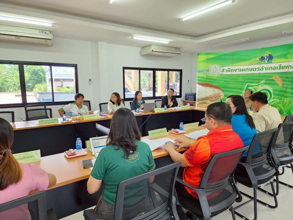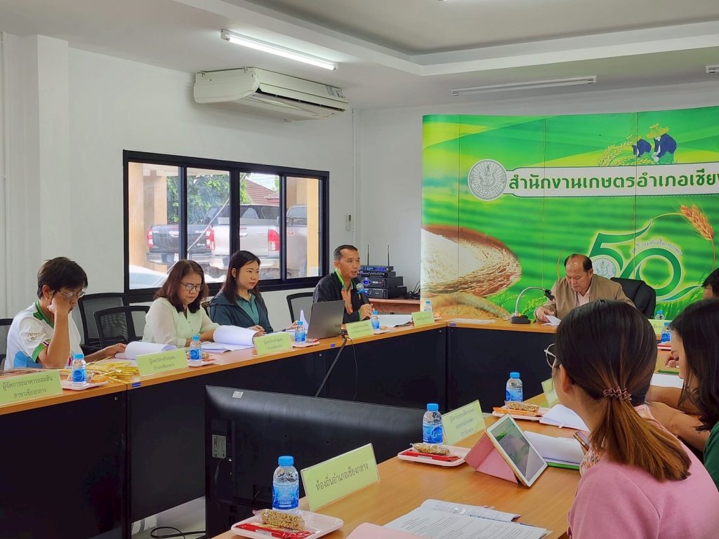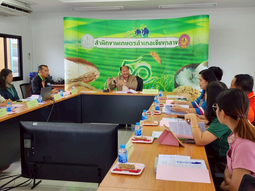 วันที่ 19 มิถุนายน 2568 นายเรวัต พรมสาส์น เกษตรอำเภอเชียงกลาง พร้อมด้วย นางสาวนิลาวรรณ สุโรพันธ์ นักวิชาการส่งเสริมการเกษตรปฏิบัติการ จัดประชุมคณะกรรมการส่งเสริมวิสาหกิจชุมชนอำเภอเชียงกลาง ครั้งที่ 2/2568 ประจำปีงบประมาน 2568 ภายใต้โครงการส่งเสริมและพัฒนาผู้ประกอบการวิสาหกิจชุมชน เพื่อขับเคลื่อนการส่งเสริมวิสาหกิจชุมชนระดับอำเภอและติดตามผลการดำเนินกิจการของวิสาหกิจชุมชนในพื้นที่ให้เป็นไปตามแนวทางที่คณะกรรมการส่งเสริมวิสาหกิจชุมชนระดับจังหวัดกำหนดและมีการชี้แจงผลการดำเนินงาน แนวทางการส่งเสริม สนับสนุนวิสาหกิจชุมชนในรอบปีที่ผ่านมา ตลอดจนรายงานปัญหาและอุปสรรค ข้อเสนอแนะในการดำเนินงาน เพื่อร่วมกันหาแนวทางในการแก้ไขร่วมกัน โดยมี นายโชดก ทองหาร นายอำเภอเชียงกลาง เป็นประธานในที่ประชุม ณ ห้องประชุมสำนักงานเกษตรอำเภอเชียงกลาง จังหวัดน่าน