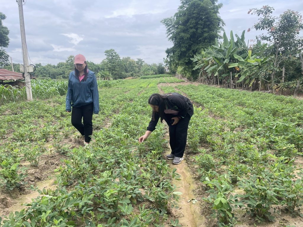 วันที่ 1 กรกฎาคม 2568 นายเรวัต พรมสาส์น เกษตรอำเภอเชียงกลาง มอบหมายให้นางสาวนิลาวรรณ สุโรพันธ์ นักวิชาการส่งเสริมการเกษตรชำนาญการ และนางสาวจิลลาภัทร ทีฆาวงค์ นักวิชาการส่งเสริมการเกษตรปฏิบัติการ ร่วมกับนางสาวกชกร แสนธิวัง นักวิชาการส่งเสริมการเกษตรชำนาญการ กลุ่มยุทธศาสตร์และสารสนเทศ สำนักงานเกษตรจังหวัดน่าน และคณะอาจารย์จากสถาบันวิจัยวิทยาศาสตร์และเทคโนโลยีแห่งประเทศไทย ลงพื้นที่พบปะเกษตรกรและแลกเปลี่ยนเรียนรู้การผลิตถั่วลิสง พร้อมทั้งคัดเลือกและเก็บข้อมูลพื้นฐานของเกษตรกรที่มีความพร้อมเป็นแปลงทดสอบนวัตกรรมเทคโนโลยีการผลิตถั่วลิสง ณ บ้านน้ำคา หมู่ที่ 1 ตำบลพญาแก้ว อำเภอเชียงกลาง จังหวัดน่าน