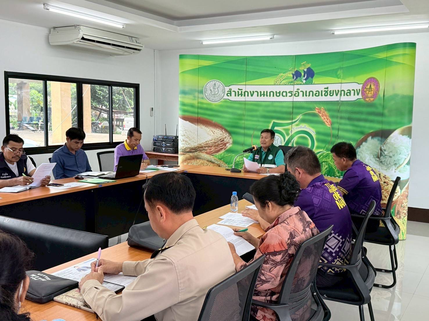 วันที่ 9 กรกฎาคม 2568 นายเรวัต พรมสาส์น เกษตรอำเภอเชียงกลาง พร้อมด้วยเจ้าหน้าที่สำนักงานเกษตรอำเภอเชียงกลาง จัดประชุมคณะกรรมการเครือข่าย ศพก.และแปลงใหญ่ และเชื่อมโยงการดำเนินงานคณะกรรมการเครือข่ายแปลงใหญ่ฯ และ ศพก. ระดับอำเภอ ครั้งที่ 4/2568 ภายใต้โครงการศูนย์เรียนรู้การเพิ่มประสิทธิภาพการผลิตสินค้าเกษตรและโครงการระบบส่งเสริมเกษตรแบบแปลงใหญ่เพื่อปรับเพิ่มผลิตภาพการผลิต ประจำปีงบประมาณ พ.ศ. 2568 เพื่อรับทราบผลการดำเนินงานในปีที่ผ่านมา และหารือชี้แจงแนวทางการดำเนินงานในปี 2568 ณ ห้องประชุมสำนักงานเกษตรอำเภอเชียงกลาง จังหวัดน่าน
