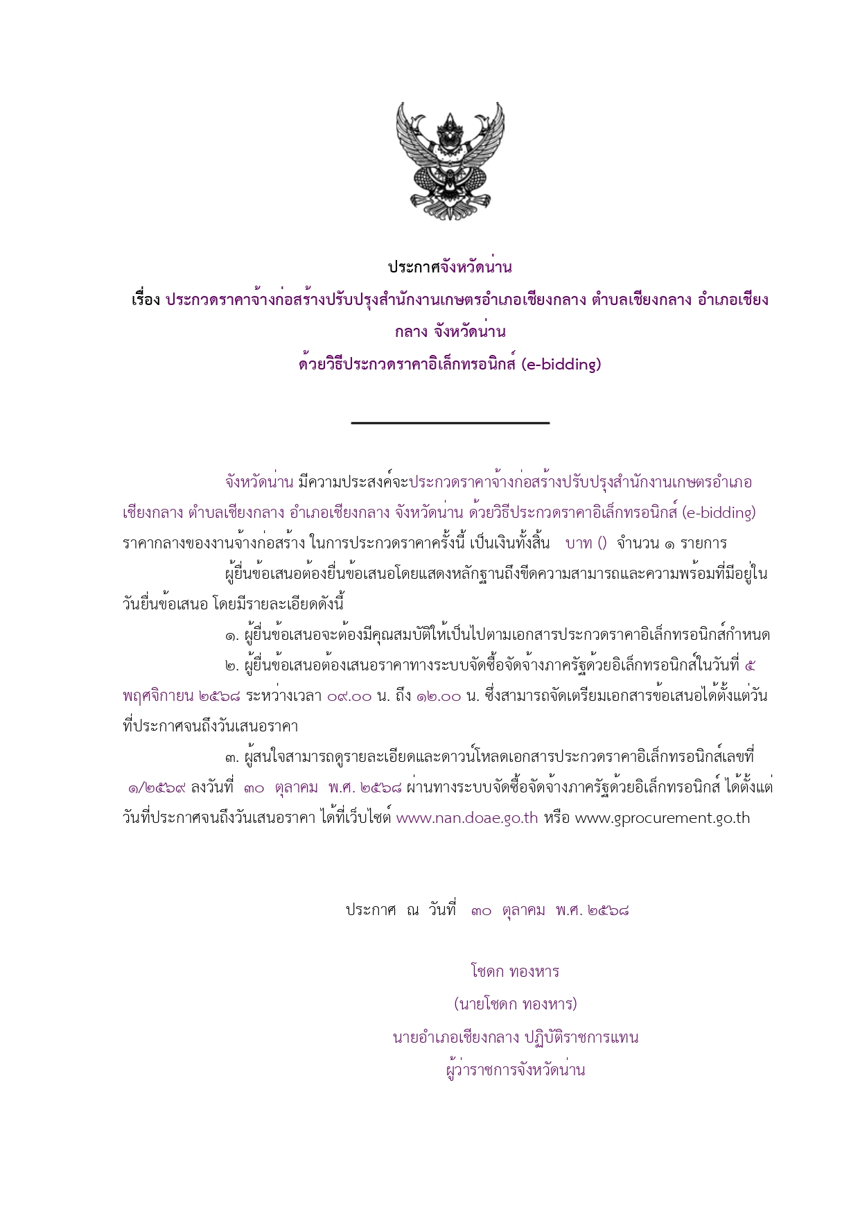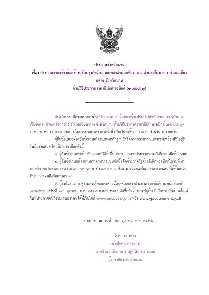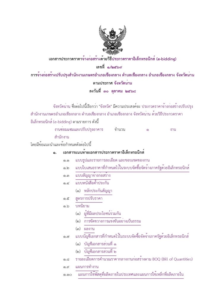 แนะแนวเรื่อง การประกาศรายละเอียดข้อมูลราคากลางสำหรับโครงการจ้างเหมาปรับปรุงสำนักงานเกษตรอำเภอเชียงกลาง ตำบลเชียงกลาง อำเภอเชียงกลาง จังหวัดน่าน