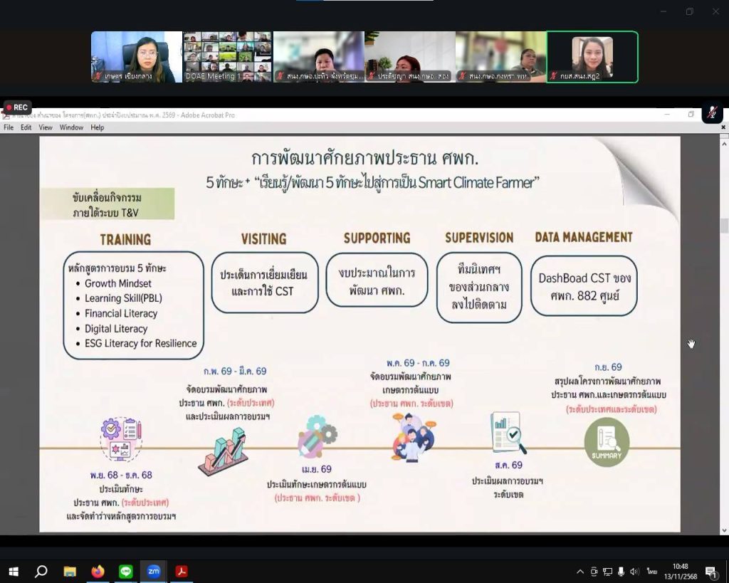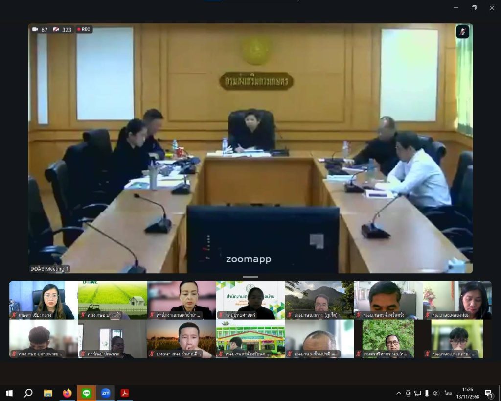วันที่ 13 พฤศจิกายน 2568 เวลา 10.30 น. นายเรวัต พรมสาส์น เกษตรอำเภอเชียงกลาง มอบหมายให้ นางสาวปิยรัตน์ ธีราธรรม นักวิชาการส่งเสริมการเกษตรปฏิบัติการ เข้าร่วมประะชุมชี้แจงการดำเนินงานโครงการศูนย์เรียนรู้การเพิ่มประสิทธิภาพการผลิตสินค้าเกษตร (ศพก.) ปีงบประมาณ 2569 ผ่านระบบประชุมออนไลน์ Zoom Meeting ณ สำนักงานเกษตรอำเภอเชียงกลาง จังหวัดน่าน