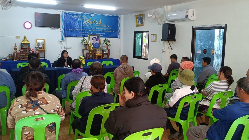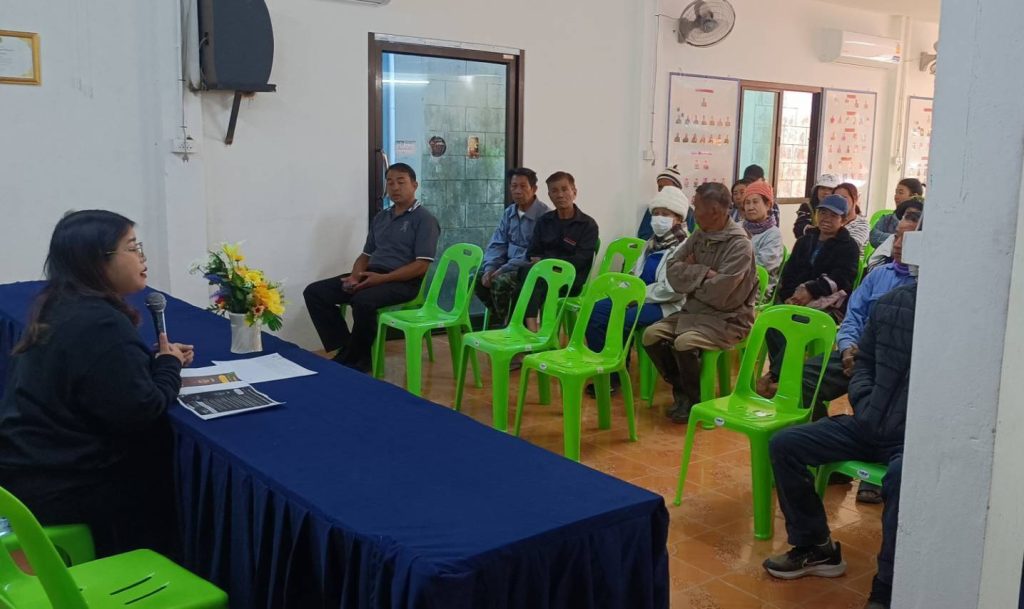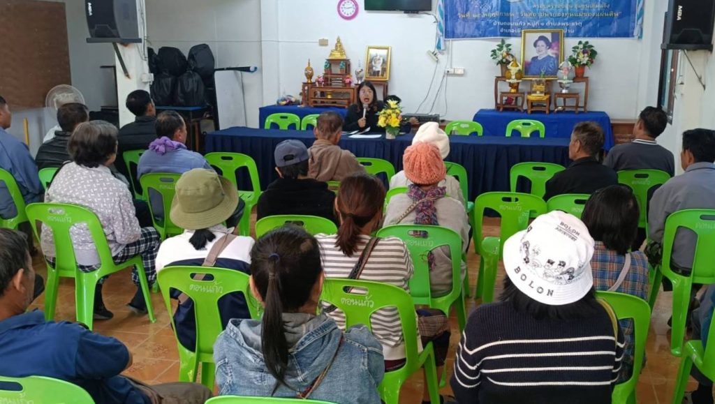 วันที่ 28 พฤศจิกายน 2568 นายเรวัต พรมสาส์น เกษตรอำเภอเชียงกลาง มอบหมายให้นางสาวปิยรัตน์ ธีราธรรม นักวิชาการส่งเสริมการเกษตรปฏิบัติการ จัดเวทีชี้แจงคุณสมบัติและเงื่อนไข และรับสมัครเกษตรกรเข้าร่วมโครงการพัฒนาสวนลำไยคุณภาพ ตัดแต่งทรงพุ่ม/ช่อผล ฟื้นฟูสวนลำไย เพื่อเพิ่มรายได้ แก่เกษตรกรผู้ปลูกลำไย ตำบลพระธาตุ ณ หอประชุมหมู่บ้าน บ้านดอนแก้ว หมู่ 1 ตำบลพระธาตุ อำเภอเชียงกลาง จังหวัดน่าน