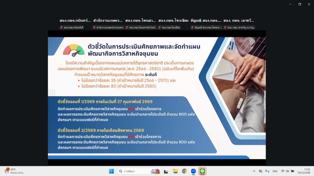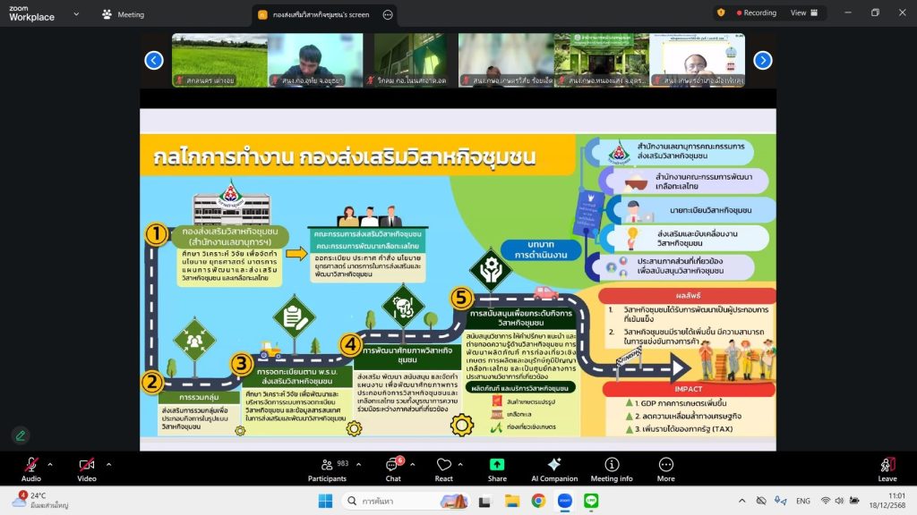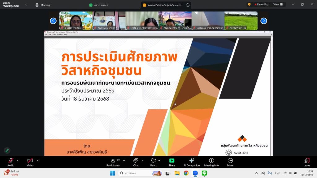 วันที่ 18-19 ธันวาคม 2568 นายเรวัต พรมสาส์น เกษตรอำเภอเชียงกลาง พร้อมด้วยนางสาวนิลาวรรณ สุโรพันธ์ นักวิชาการส่งเสริมการเกษตรชำนาญ เข้าร่วมอบรมพัฒนานายทะเบียนวิสาหกิจชุมชนผ่านระบบออนไลน์ เพื่อสร้างความรู้ความเข้าใจในการดำเนินงานด้านทะเบียนวิสาหกิจชุมชน แนวทางการให้คำแนะนำในการจดทะเบียนจัดตั้งนิติบุคคล ภาษีที่เกี่ยวข้อง การบริหารจัดการด้านการเงิน การให้คำแนะนำด้านพระราชบัญญัติคุ้มครองข้อมูลส่วนบุคคล พ.ศ. 2562 รวมถึงการให้คำแนะนำและแก้ไขปัญหาในการดำเนินงานด้านทะเบียนวิสาหกิจชุมชนในพื้นที่ได้ ณ สำนักงานเกษตรอำเภอเชียงกลาง อำเภอเชียงกลาง จังหวัดน่าน