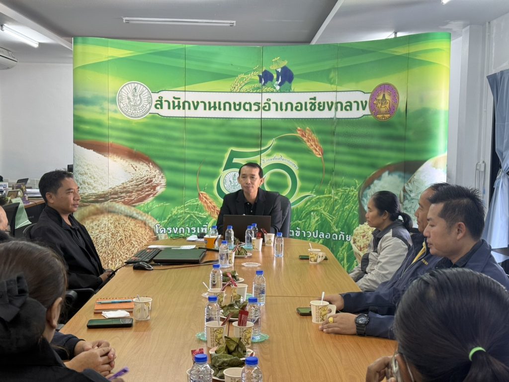 วันที่ 22 ธันวาคม 2568 เวลา 09.00 น. นายเรวัต พรมสาส์น เกษตรอำเภอเชียงกลาง พร้อมด้วยนายเมธี มะลิลม นักวิชาการส่งเสริมการเกษตรชำนาญ จัดเวทีแลกเปลี่ยนเรียนรู้ เพื่อพัฒนางานอาสาสมัครเกษตรหมู่บ้าน (อกม.) ตามกิจกรรม การพัฒนาเกษตรกร กิจกรรมย่อย พัฒนาอาสาสมัครเกษตรหมู่บ้าน/การส่งเสริมและพัฒนากระบวนการปฏิบัติงานอาสาสมัครเกษตร/เวทีแลกเปลี่ยนเรียนรู้เพื่อพัฒนางานอาสาสมัครเกษตรหมู่บ้าน (อกม.) ภายใต้ โครงการพัฒนาอาสาสมัครเกษตรหมู่บ้าน ประจำปีงบประมาณ พ.ศ. 2569 ณ ห้องประชุมสำนักงานเกษตรอำเภอเชียงกลาง จังหวัดน่าน โดยมีเป้าหมาย ได้แก่ อาสาสมัครเกษตรหมู่บ้าน (อกม.) จำนวน 10 ราย