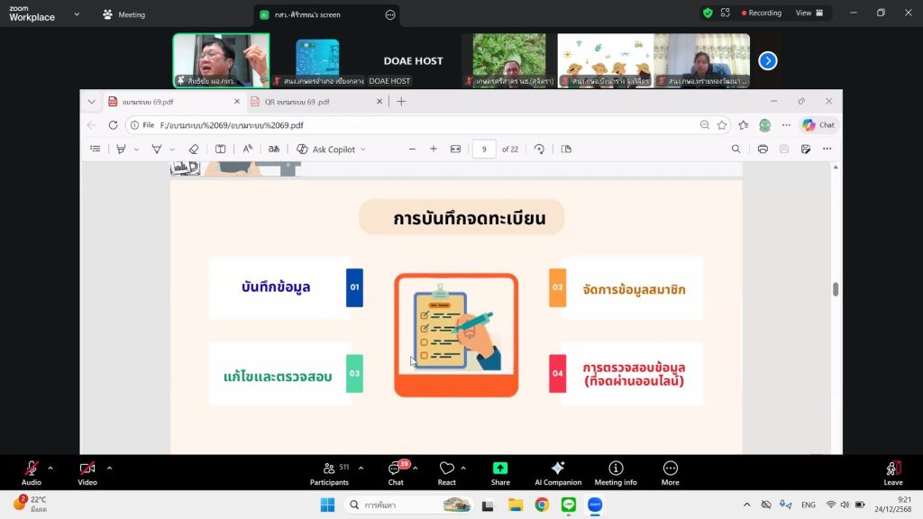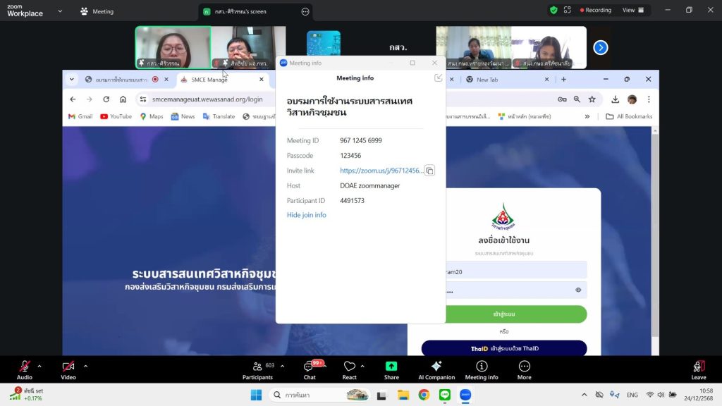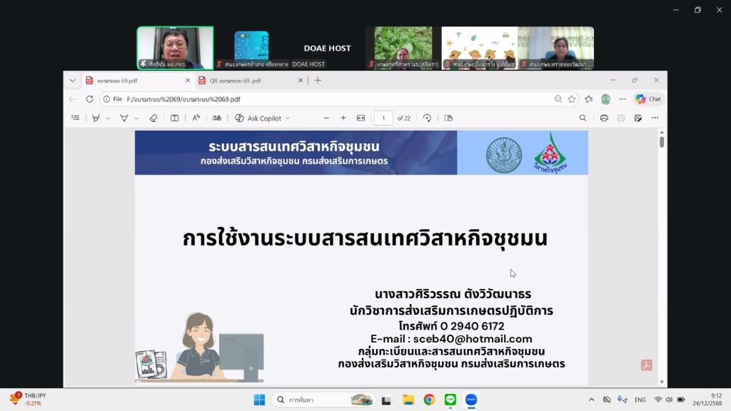 วันที่ 24 ธันวาคม 2568 นายเรวัต พรมสาส์น เกษตรอำเภอเชียงกลาง พร้อมด้วยนางสาวนิลาวรรณ สุโรพันธ์ นักวิชาการส่งเสริมการเกษตรชำนาญการ เข้าร่วมอบรมการใช้งานระบบสารสนเทศวิสาหกิจชุมชนผ่านระบบออนไลน์ เพื่อสร้างความรู้ ความเข้าใจ ในการใช้งานระบบสารสนเทศวิสาหกิจชุมชน และแนวทางการดำเนินการต่อทะเบียน ประจำปี 2569 ณ สำนักงานเกษตรอำเภอเชียงกลาง อำเภอเชียงกลาง จังหวัดน่าน