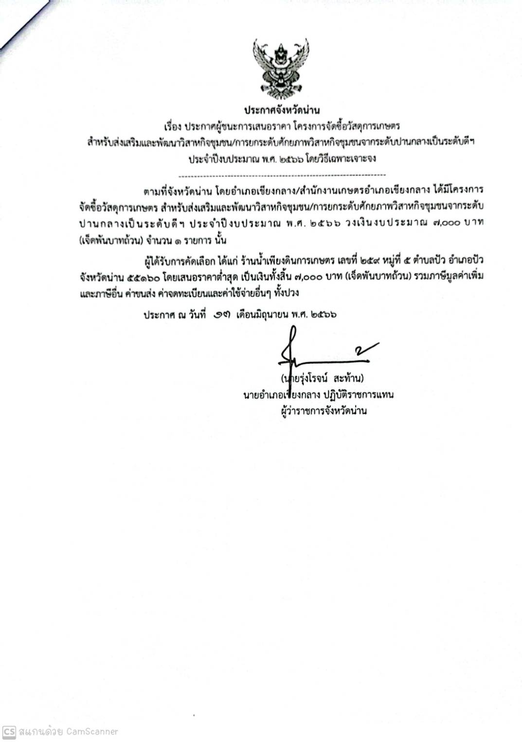 แนะแนวเรื่อง ประกาศจังหวัดน่าน เรื่อง ประกาศจังหวัดน่าน เรื่อง ประกาศผู้ชนะการเสนอราคา โครงการจัดซื้อวัสดุการเกษตร สำหรับส่งเสริมการจัดทำแปลงเรียนรู้เพิ่มประสิทธิภาพการผลิตให้กับสมาชิกกลุ่มแปลงใหญ่ถั่วลิสงอำเภอเชียงกลาง (แปลงปี 2566) โดยวิธีเฉพาะเจาะจง
