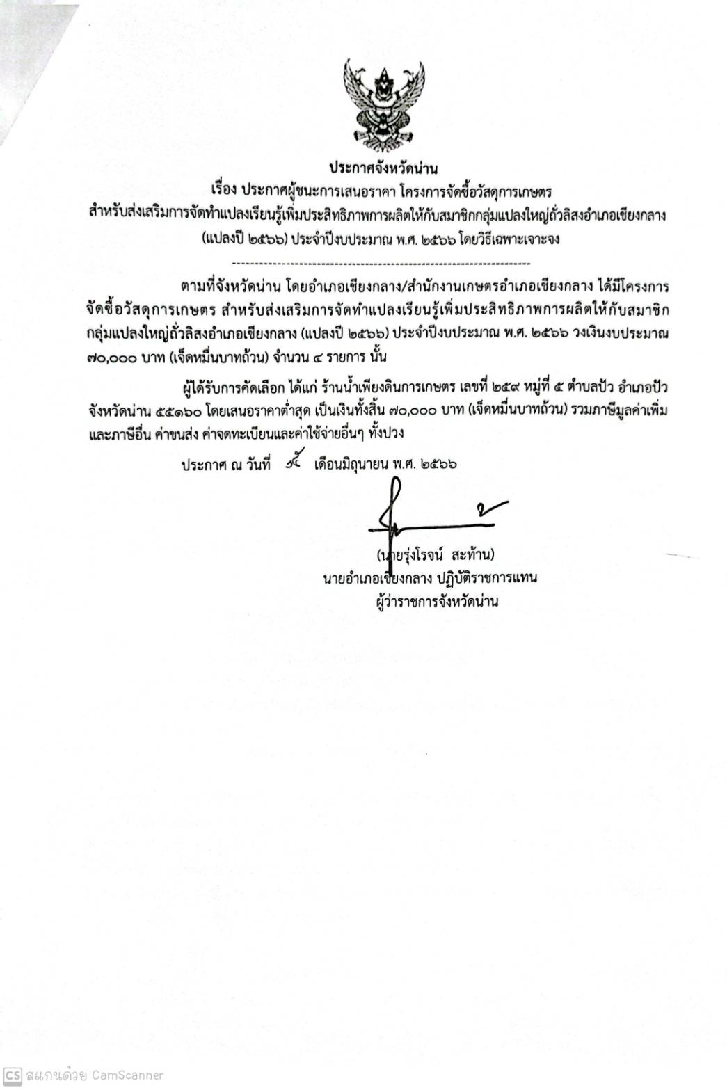 แนะแนวเรื่อง ประกาศจังหวัดน่าน เรื่อง ประกาศผู้ชนะการเสนอราคา จัดซื้อวัสดุการเกษตรสำหรับส่งเสริมและพัฒนาวิสาหกิจชุมชน/การยกระดับศักยภาพวิสาหกิจชุมชนจากระดับปานกลางเป็นระดับดีฯ โดยวิธีเฉพาะเจาะจง ประกาศจังหวัดน่าน เรื่อง ประกาศผู้ชนะการเสนอราคา โครงการจัดซื้อวัสดุอุปกรณ์ติดตั้งระบบน้ำ เพื่อจัดทำแปลงเรียนรู้ฯ ประจำปีงบประมาณ พ.ศ. 2566 โดยวิธีเฉพาะเจาะจง