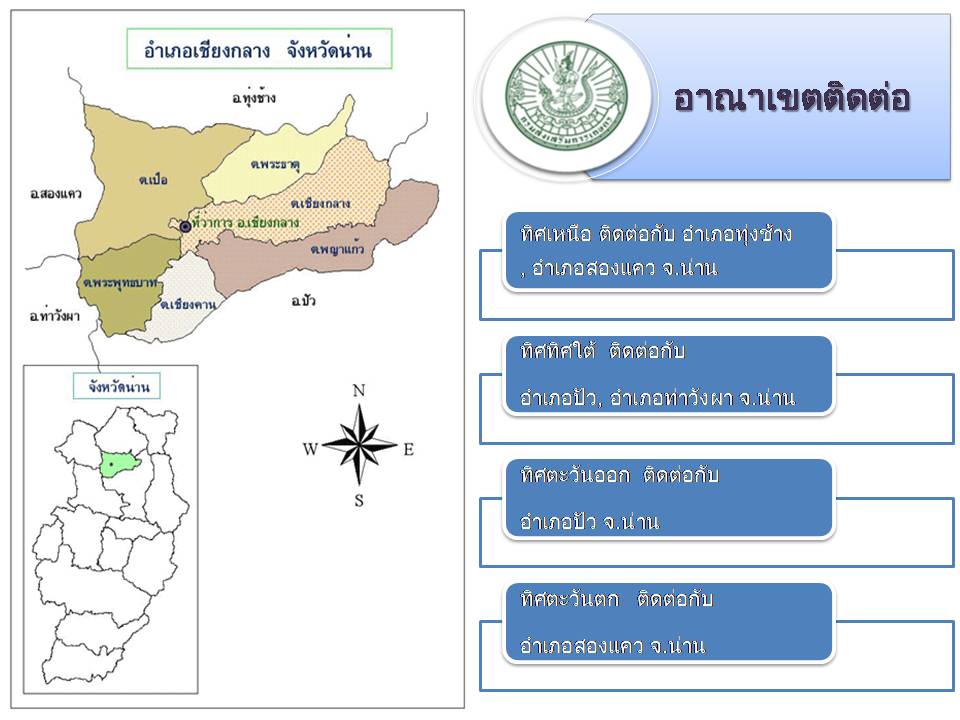 การปกครอง : อำเภอเชียงกลาง แบ่งการปกครองเป็น 6 ตำบล 60 หมู่บ้าน ประกอบด้วย