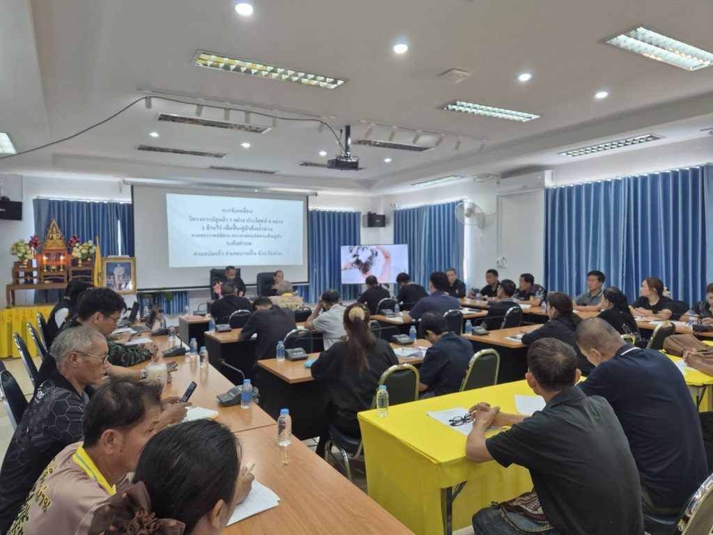 นายกันณพงศ์ สิริวิจักษณ์ เกษตรอำเภอนาหมื่น พร้อมด้วยเจ้าหน้าที่สำนักงานเกษตรอำเภอนาหมื่น เข้าร่วมการประชุมติดตามการดำเนินงาน ขับเคลื่อนโครงการปลูกป่า 3 อย่าง ประโยชน์ 4 อย่าง 1 ล้านไร่ เพื่อฟื้นฟูป่าต้นน้ำน่าน ตามพระราชปณิธานพระบาทสมเด็จพระเจ้าอยู่หัวระดับตำบล ณ ห้องประชุมเทศบาลตำบลบ่อแก้ว ตำบลบ่อแก้ว อำเภอนาหมื่น จังหวัดน่าน
