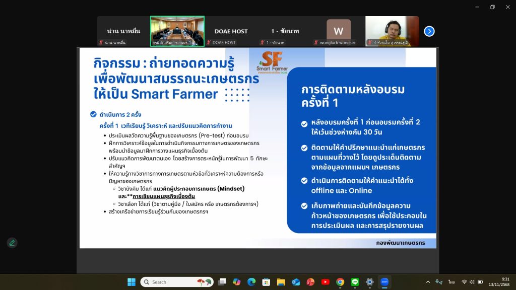 นายกันณพงศ์ สิริวิจักษณ์ เกษตรอำเภอนาหมื่น มอบหมายให้นายดำรงค์ศักดิ์ สุธรรมจา นักวิชาการส่งเสริมการเกษตรปฏิบัติการ เข้าร่วมสัมมนาเชิงปฏิบัติการเพิ่มศักยภาพการพัฒนาเกษตรกรและองค์กรเกษตรกร ผ่านระบบประชุมออนไลน์ (Zoom Meeting) เพื่อสร้างความเข้าใจแก่เจ้าหน้าที่ในการดำเนินงานพัฒนาเกษตรกรและองค์กรเกษตรกรของกรมส่งเสริมการเกษตร ประจำปีงบประมาณ พ.ศ. 2569 ณ สำนักงานเกษตรอำเภอนาหมื่น ตำบลนาทะนุง อำเภอนาหมื่น จังหวัดน่าน