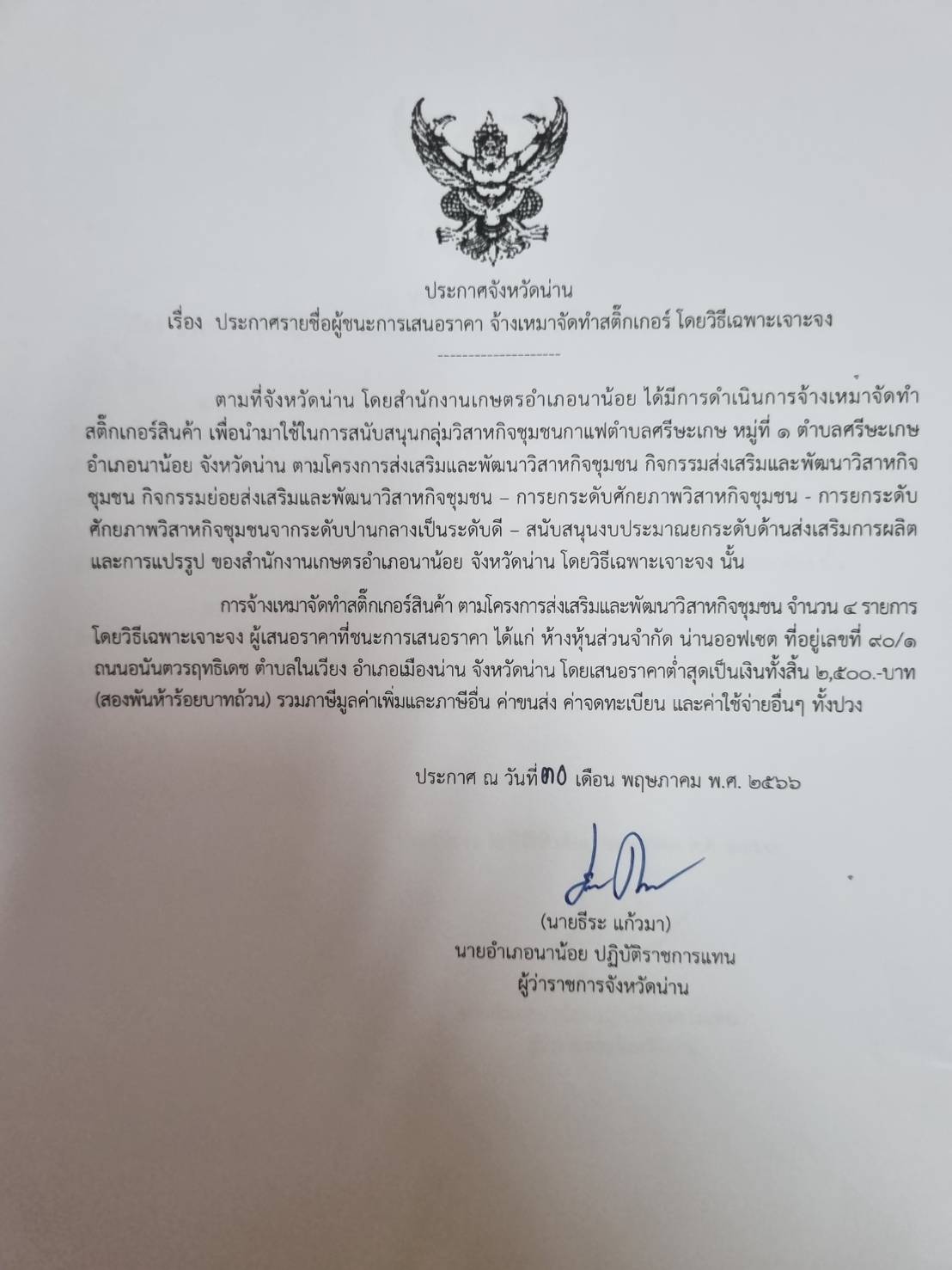สำนักงานเกษตรอำเภอนาน้อยร่วมกับสำนักงานเกษตรจังหวัดน่าน ดำเนินการจัดฝึกอบรมการผลิตพืชที่เหมาะสมตามศักยภาพของพื้นที่โครงการส่งเสริมและพัฒนาอาชีพเพื่อแก้ไขปัญหาที่ดินทำกินของเกษตร (คทช.) ประจำปีงบประมาณ พ.ศ. 2566