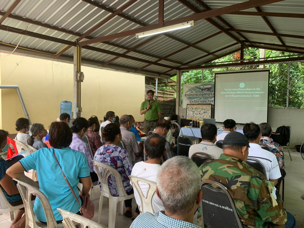 วันที่ 31 สิงหาคม 2566 นางสาวน้ำทิพย์ สิทธิ เกษตรอำเภอนาน้อย มอบหมายให้นางสาวบัณฑิตา เผือทะนา พร้อมเจ้าหน้าที่สำนักงานเกษตรอำเภอนาน้อย ร่วมกับ นายวรากร ดีน้อย นักวิชาการส่งเสริมการเกษตรชำนาญการ และนายพีรพงษ์ ทิพวิไชย นักวิชาการส่งเสริมการเกษตรปฏิบัติการ กลุ่มยุทธศาสตร์และสารสนเทศ สำนักงานเกษตรจังหวัดน่าน ดำเนินการจัดฝึกอบรมการผลิตพืชที่เหมาะสมตามศักยภาพของพื้นที่ โครงการส่งเสริมและพัฒนาอาชีพเพื่อแก้ไขปัญหาที่ดินทำกินของเกษตร (คทช.) ประจำปีงบประมาณ พ.ศ. 2566 โดยมีวัตถุประสงค์เพื่อส่งเสริมการผลิตพืชที่เหมาะสมตามศักยภาพของพื้นที่เพื่อเป็นแหล่งอาหารสำหรับบริโภคในครัวเรือนและลดรายจ่ายให้แก่เกษตรกร การวิเคราะห์ปัญหาและความต้องการของเกษตร ในพื้นที่อำเภอนาน้อย จำนวน 50 ราย ณ สำนักงานเกษตรอำเภอนาน้อย จังหวัดน่าน