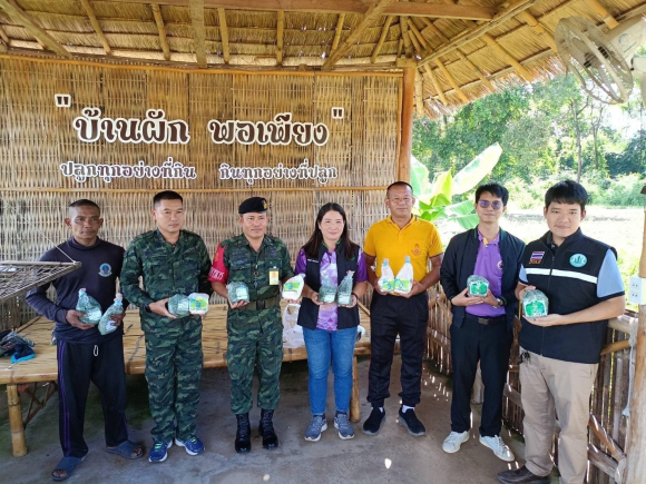 นายศักดิ์สิทธิ์ ศรีวิชัย เกษตรจังหวัดน่าน มอบหมายให้นางสาวกชกร แสนธิวัง นักวิชาการส่งเสริมการเกษตรชำนาญการ ผู้รับผิดชอบโครงการส่งเสริมการดำเนินงานโครงการอันเนื่องมาจากพระราชดำริ โครงการทหารพันธุ์ดี พร้อมด้วยเจ้าหน้าที่กลุ่มอารักขาพืช สำนักงานเกษตรจังหวัดน่าน ติดตามการดำเนินงานโครงการฯ พบว่า ปัจจุบันมีพืชที่ยังให้ผลผลิตคือ มะเขือยาว โดยพบแมลงศัตรูพืชเล็กน้อย ได้แก่ หนอนม้วนใบ และเพลี้ยอ่อน แมลงศัตรูธรรมชาติ ได้แก่ แมลงเต่าทอง โดยพืชชนิดอื่นส่วนใหญ่เก็บเกี่ยวแล้วอยู่ในระยะพักแปลงปลูกปอเทืองเพื่อเตรียมการผลิตในฤดูกาลถัดไป และได้ให้คำแนะนำเพิ่มเติมในการใช้สารชีวภัณฑ์เมตาไรเซียมคลุกผสมดินหรือปุ๋ยหมักเพื่อลดปริมาณไข่ของด้วงหมัดผักในดินซึ่งมักจะระบาดในฤดูหนาว จากนั้นได้มอบสารชีวภัณฑ์ไตรโคเดอร์มาและบิวเวอร์เรียเพื่อใช้ในกิจกรรมของทางโครงการฯ ต่อไป ณ โครงการทหารพันธุ์ดี ฐานแสงเพ็ญ ตำบลฝายแก้ว อำเภอภูเพียง จังหวัดน่าน