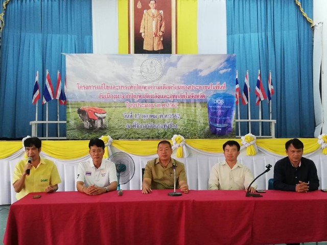 วันที่ 15 ตุลาคม 2562 นายประดิษฐ์ ธนะขว้าง หัวหน้ากลุ่มส่งเสริมและพัฒนาเกษตรกร รักษาการเกษตรจังหวัดน่าน นายชัชรินทร์ นาพรหม หัวหน้ากลุ่มยุทธศาสตร์และสารสนเทศ ร่วมมอบวัสดุในโครงการแก้ไขและบรรเทาปัญหาความเดือดร้อนของประชาชนในพื้นที่อันเนื่องมาจากปัญหาภัยแล้งและอุทกภัยในจังหวัด ปีงบประมาณ 2562 ตามความต้องการของชุมชน จำนวน 4 โครงการ พื้นที่ 4 ตำบล ในอำเภอทุ่งช้าง จังหวัดน่าน จำนวนกว่า 10 รายการ อาทิ ถังเก็บน้ำ เครื่องปั๊มน้ำ ท่อน้ำ ฯลฯ โดยมีนายเกรียงไกร เวชอนุรักษ์ นายอำเภอทุ่งช้าง ร่วมมอบข้อเสนอแนะและข้อตกลงในการดำเนินงานโครงการของชุมชน มีนายประพันธ์ จันทร์ผง เกษตรอำเภอทุ่งช้าง ชี้แจงวัตถุประสงค์การดำเนินงานโครงการฯ ณ หอประชุมอำเภอทุ่งช้าง จังหวัดน่าน