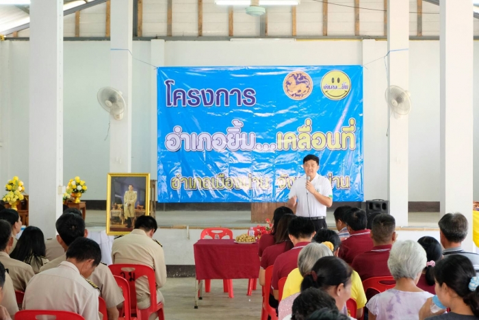 วันที่24 ตุลาคม 2562 สำนักงานเกษตรอำเภอเมืองน่าน นำโดยนายจักรพันธ์ อินไสย รักษาราชการเกษตรอำเภอเมืองน่านพร้อมด้วยนายชยุต ไชยมะโน นักวิชาการส่งเสริมการเกษตรชำนาญการ เข้าร่วมกิจกรรมอำเภอยิ้มเคลื่อนที่ โดยมีนายวิศิษฐ์ ทวีสิงห์ นายอำเภอเมืองน่าน เป็นประธานเปิดงานโครงการอำเภอยิ้มเคลื่อนที่ ณ หอประชุมหมู่บ้าน บ้านวังหมอ หมู่ที่ 1 ตำบลบ่อ อำเภอเมืองน่าน จังหวัดน่าน ในครั้งนี้มีหน่วยงานราชการและเอกชนหลายหน่วยงานมาให้บริการประชาชนในพื้นที่และพื้นที่ใกล้เคียง