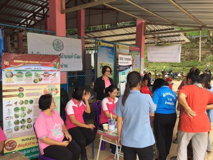 วันที่ 29 ตุลาคม 2562 นางอนงค์ ตันติตระการวัฒนา เกษตรอำเภอท่าวังผาและเจ้าหน้าที่สำนักงานเกษตรอำเภอท่าวังผา เข้าร่วมกิจกรรมโครงการอำเภอยิ้มเคลื่อนที่ ประจำเดือน ตุลาคม 2562 ได้แจ้งประชาสัมพันธ์ ให้เกษตรกรติดตามข่าวสารแนวทางมาตรการการใช้สารเคมี 3 ชนิด (ไกลโฟเซต ,พาราควอต และ คลอร์ไพรีฟอส )พร้อมทั้งให้คำแนะนำการทำเกษตรกรรมยั่งยืนเพื่อเป็นทางเลือกลดการใช้สารเคมีทางการเกษตร และแจ้งให้เกษตรกรติดตามเฝ้าระวังการทำลายของหนอนกระทู้ข้าวโพดลายจุดในพื้นที่ หลังจากนั้น เจ้าหน้าที่ สำนักงานเกษตรอำเภอท่าวังผาได้ให้บริการตรวจสอบข้อมูลการปลูกพืช แนะนำใช้ แอพพลิเคชั่น Farm book ในการติดตามข้อมูลทะเบียนเกษตรกรด้วยตนเอง ณ โรงเรียนบ้านดอยติ้ว ต. ศรีภูมิ อ.ท่าวังผา จ.น่าน